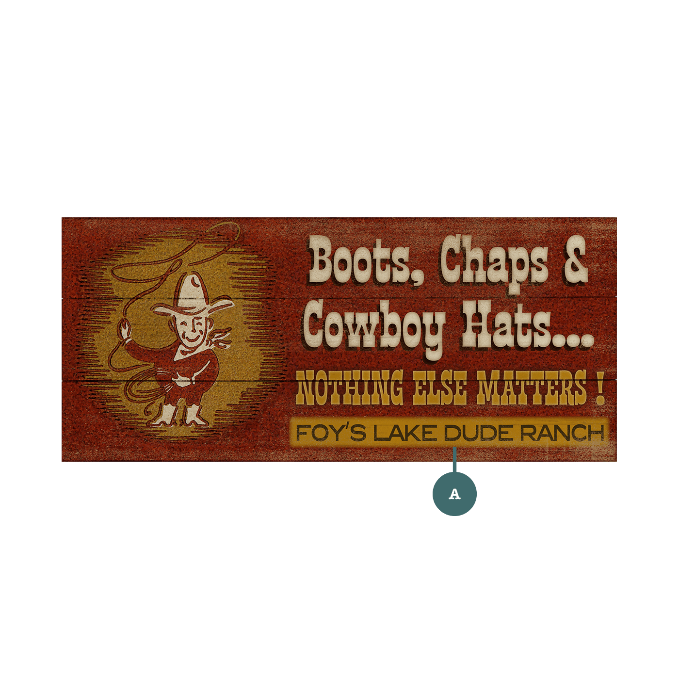 Celebrate the spirit of the Wild West with this whimsically drawn cowboy, skillfully illustrated with expressive lines that bring a playful charm to this artwork. The bold lettering and warm, earthy tones enhance its rustic appeal, while the distressed finish gives it a timeworn authenticity reminiscent of classic western saloons and ranch decor. The textured background and nostalgic typography reinforce the rugged, carefree lifestyle it represents, making it a perfect addition to barns, man caves, country homes, or any space looking to capture the essence of cowboy culture and frontier adventure.