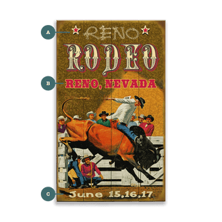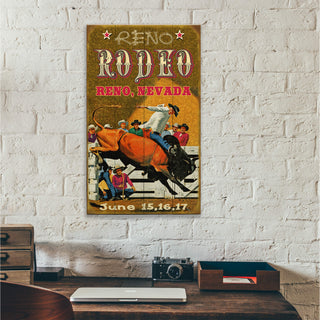 This vintage-style rodeo artwork bursts with energy, capturing the thrilling intensity of a bull rider as he battles to stay atop a powerful bucking bull. Surrounded by spectators in classic Western attire, the scene embodies the excitement and tradition of rodeo culture. The bold typography, rich colors, and distressed textures give it an authentic, timeworn charm, perfect for those who love the adrenaline of the arena and the spirit of the Wild West. Ideal for rodeo enthusiasts, Western décor collectors, or anyone who appreciates the grit and glory of cowboy competition.