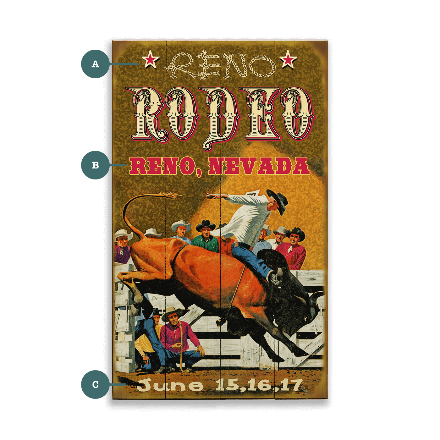 Enjoy complimentary personalization for this piece, meticulously handcrafted by our graphic design team. Specify your desired text for points A, B, and C. To ensure perfection in your custom piece, please verify your text carefully. Missing personalization information will revert to our default design as shown. To remove all text from a field, type "Remove" in that field.