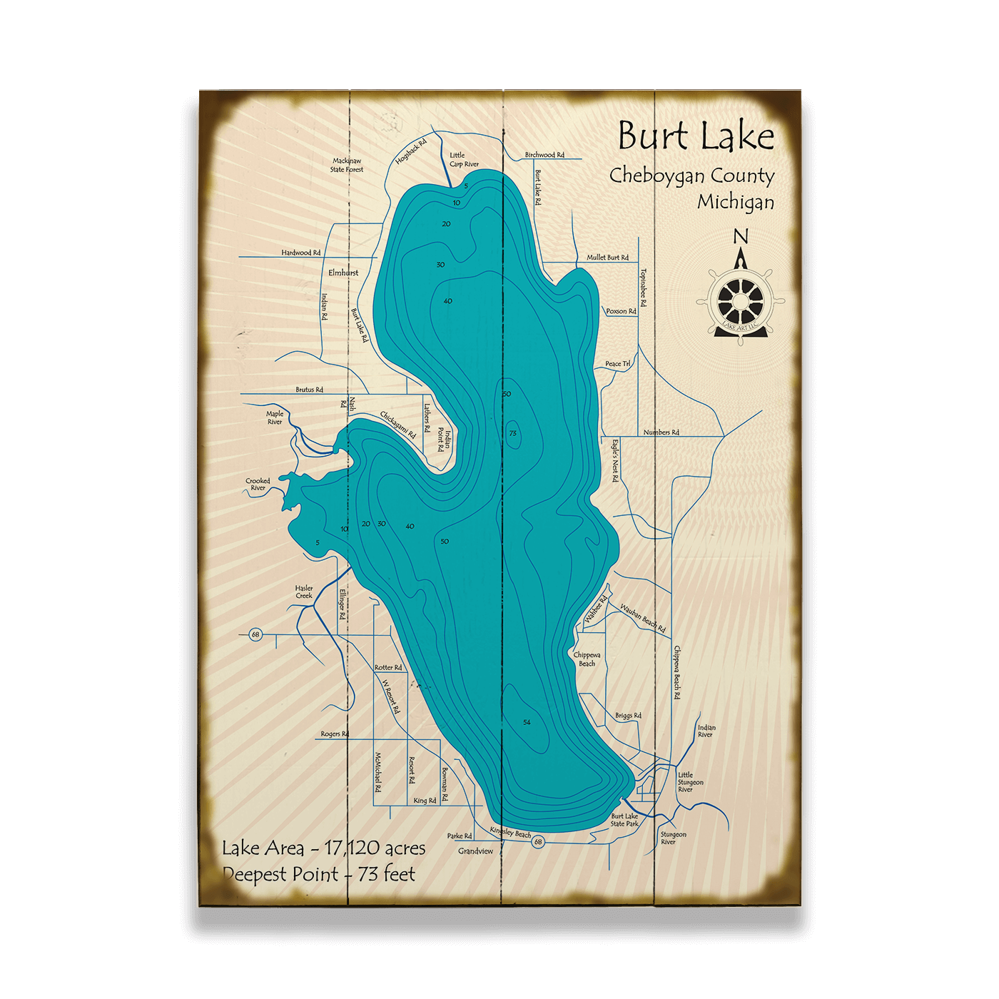 Burt Lake, Michigan - Wood & Metal Wall Art