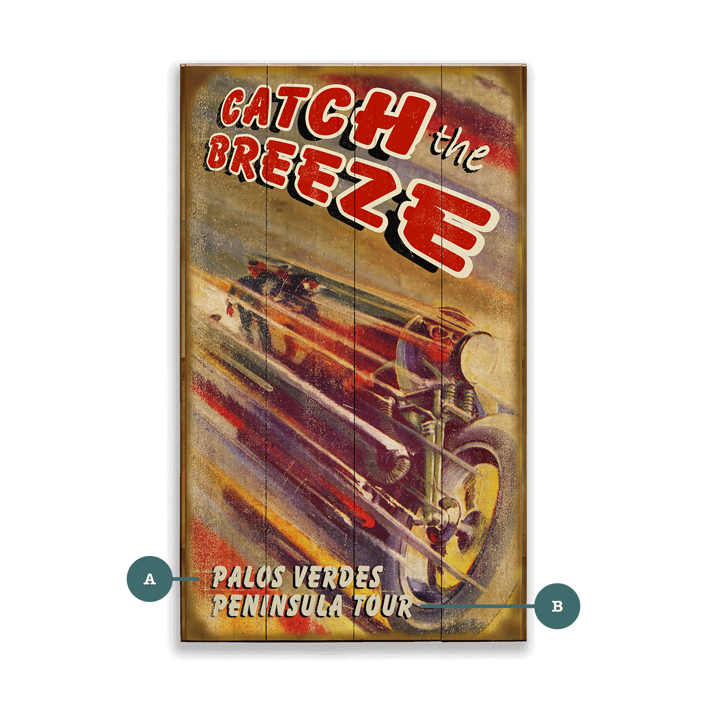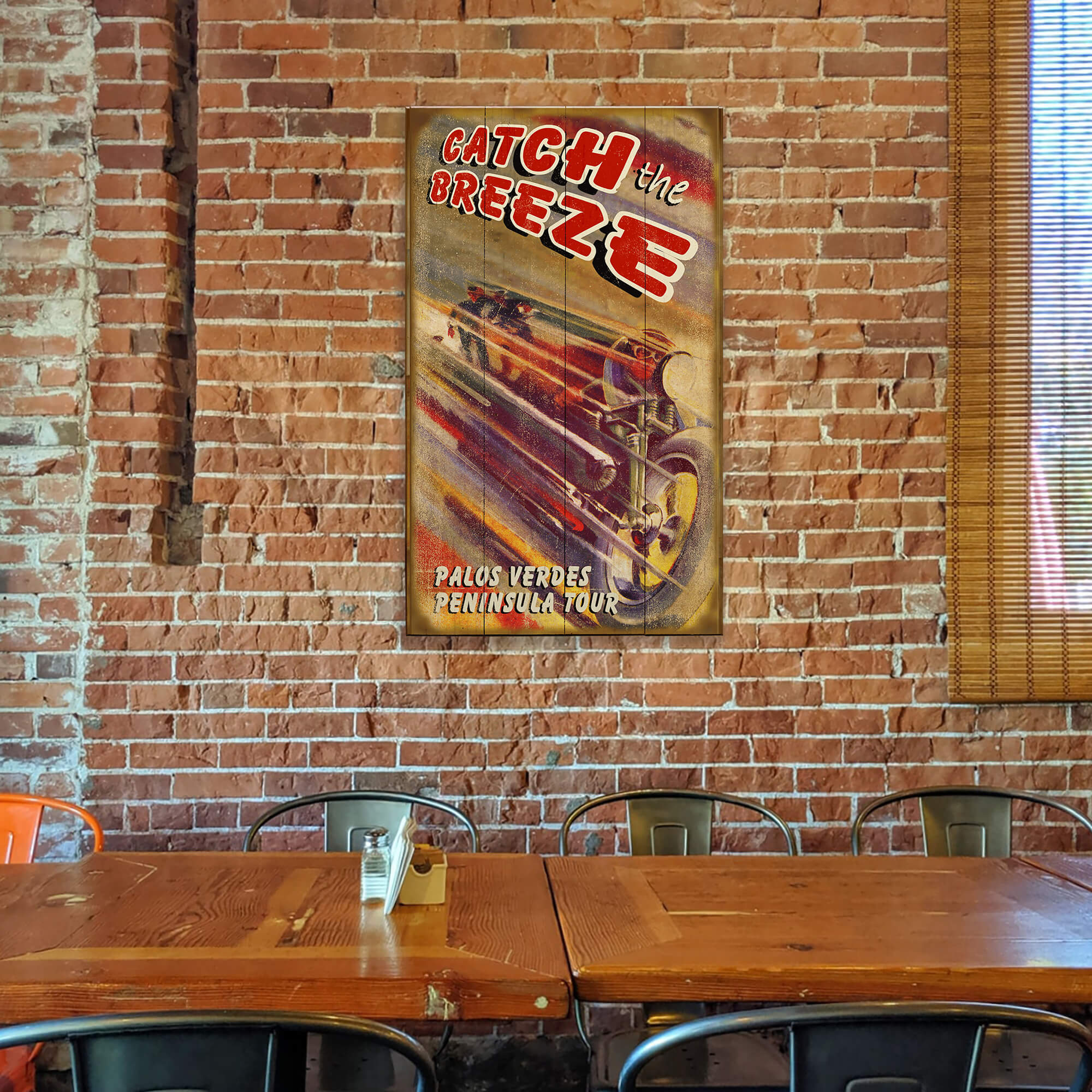 Experience the thrill of speed and the joy of the open air with the "Catch the Breeze" print, promoting the exhilarating Palos Verdes Peninsula Tour. This visually striking artwork captures the essence of speed and motion through its dynamic depiction of a vintage motorcycle in action, blurred against a vibrant backdrop. The fiery reds and deep oranges evoke a sense of adventure and excitement, making it an ideal piece for motorcycle enthusiasts and collectors of vintage motor art. Perfect for decorating a home, garage, or local venue, this poster invites viewers to feel the wind and savor the freedom of a scenic coastal drive.