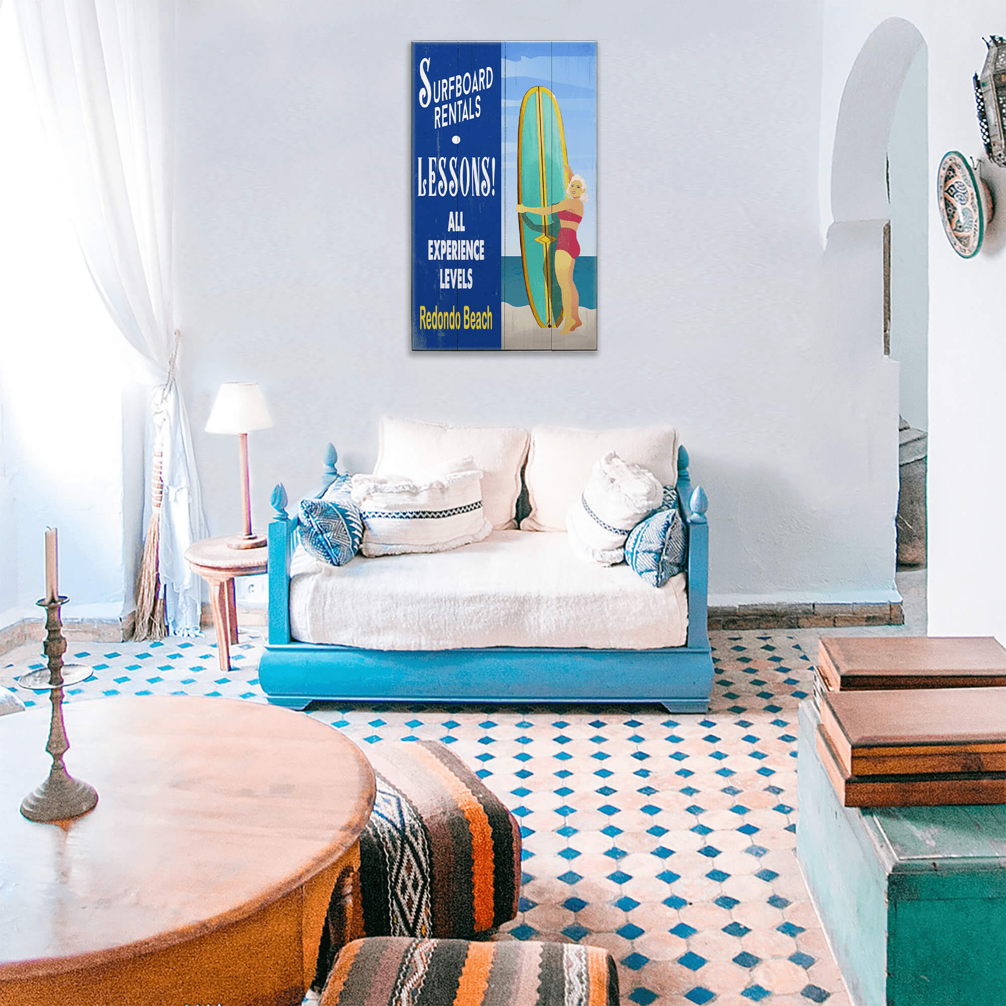 Catch the wave with this charming and inviting artwork. This piece features a delightful scene of a happy surfer girl, ready with her board, highlighting the accessible and fun experience available for all skill levels. The vintage-style design and vibrant colors evoke the classic surf culture and the welcoming spirit of the beach. Perfect for anyone who loves the surf lifestyle or seeks to add a splash of coastal inspiration to their decor, this artwork serves as a vibrant reminder of sunny days and ocean waves.