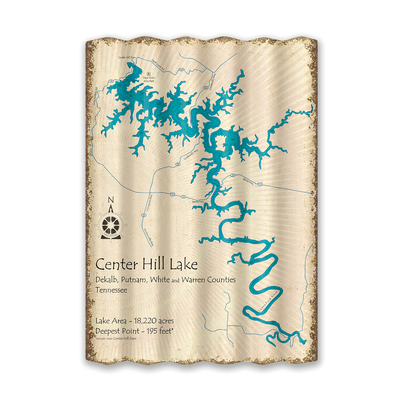 Center Hill Lake, Tennessee - Corrugated Metal Wall Art
