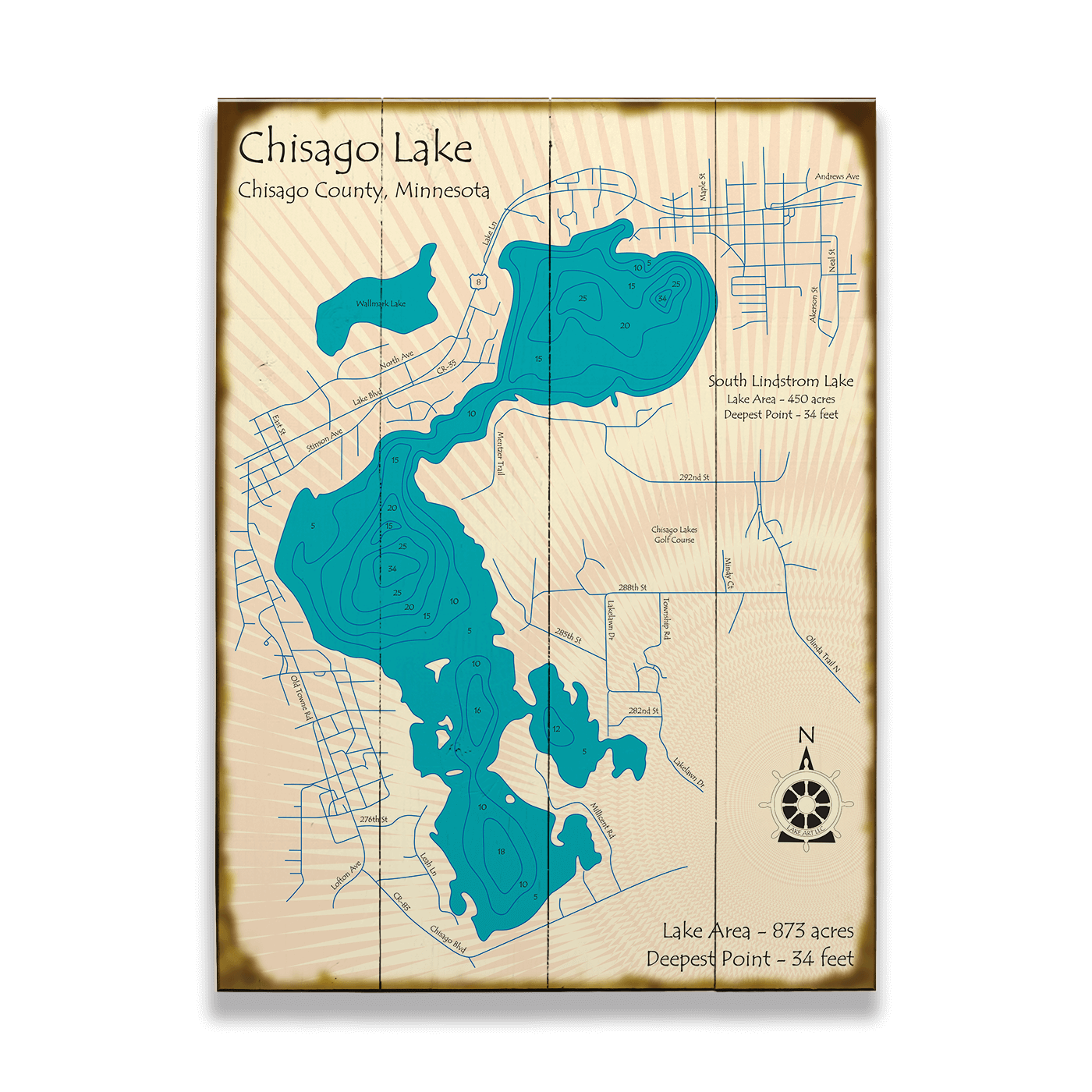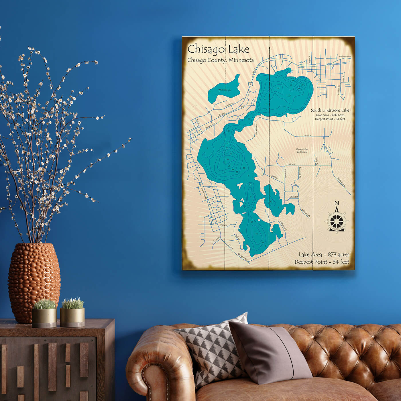 Introducing our exquisite vintage map depicting the stunning Chisago Lake, Minnesota - the perfect decor piece for any nature lover or history enthusiast! Explore the vast recreational opportunities this area has to offer, from fishing, to swimming, to a variety of water sports, with Chisago Lake being home to a number of fish species. Nature enthusiasts can also spot a diverse range of wildlife. This vintage map is a timeless piece that will add character and warmth to any room.