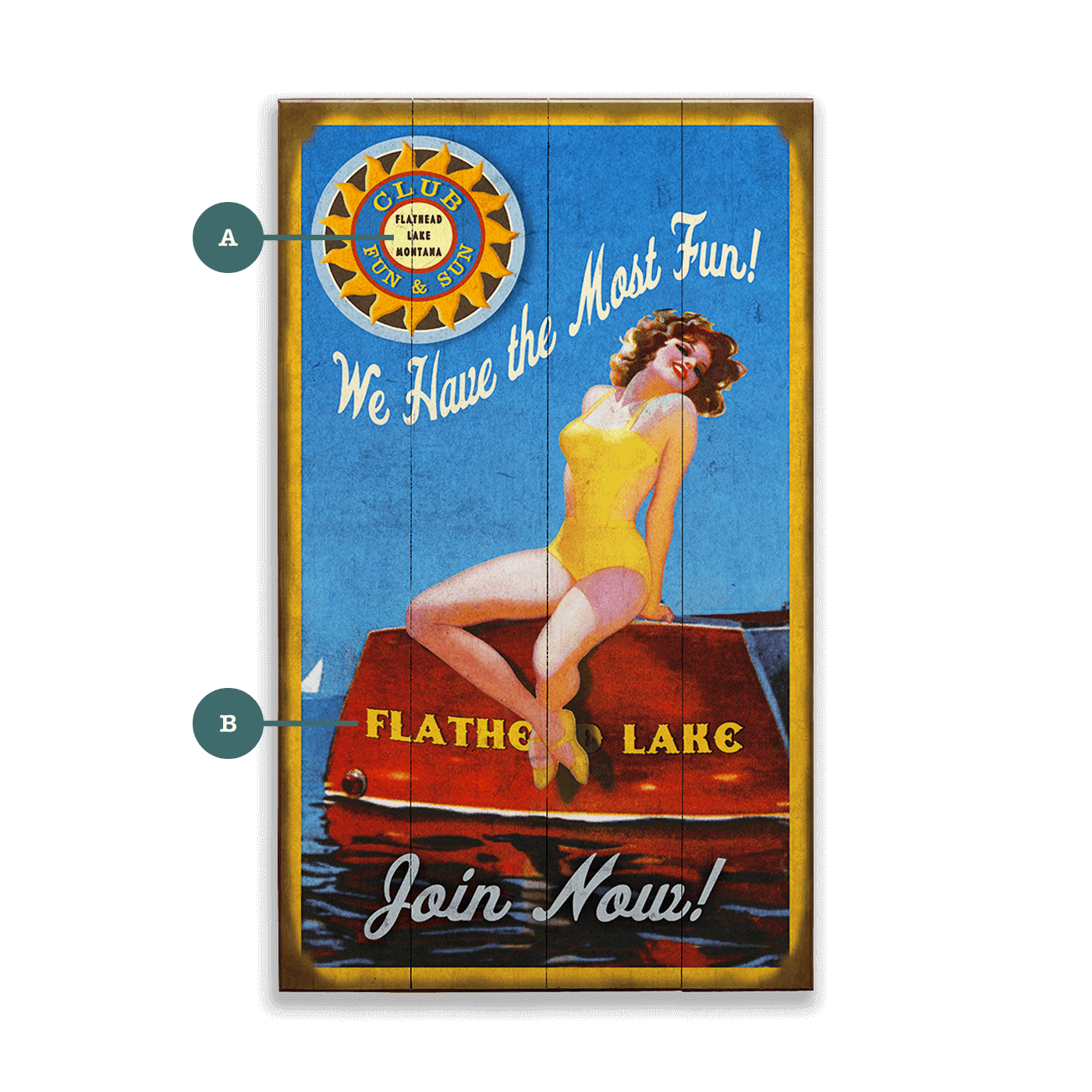 Bring the spirit of summer fun into your space with our vibrant vintage-inspired wood sign! This captivating artwork features a glamorous figure lounging on a boat, exuding an air of leisure and enjoyment, and inviting you to immerse yourself in the joy and excitement of sunny days on the water. Perfect for enhancing any room with a touch of playful nostalgia, this piece is a must-have for those who cherish the festive side of the warmest season.