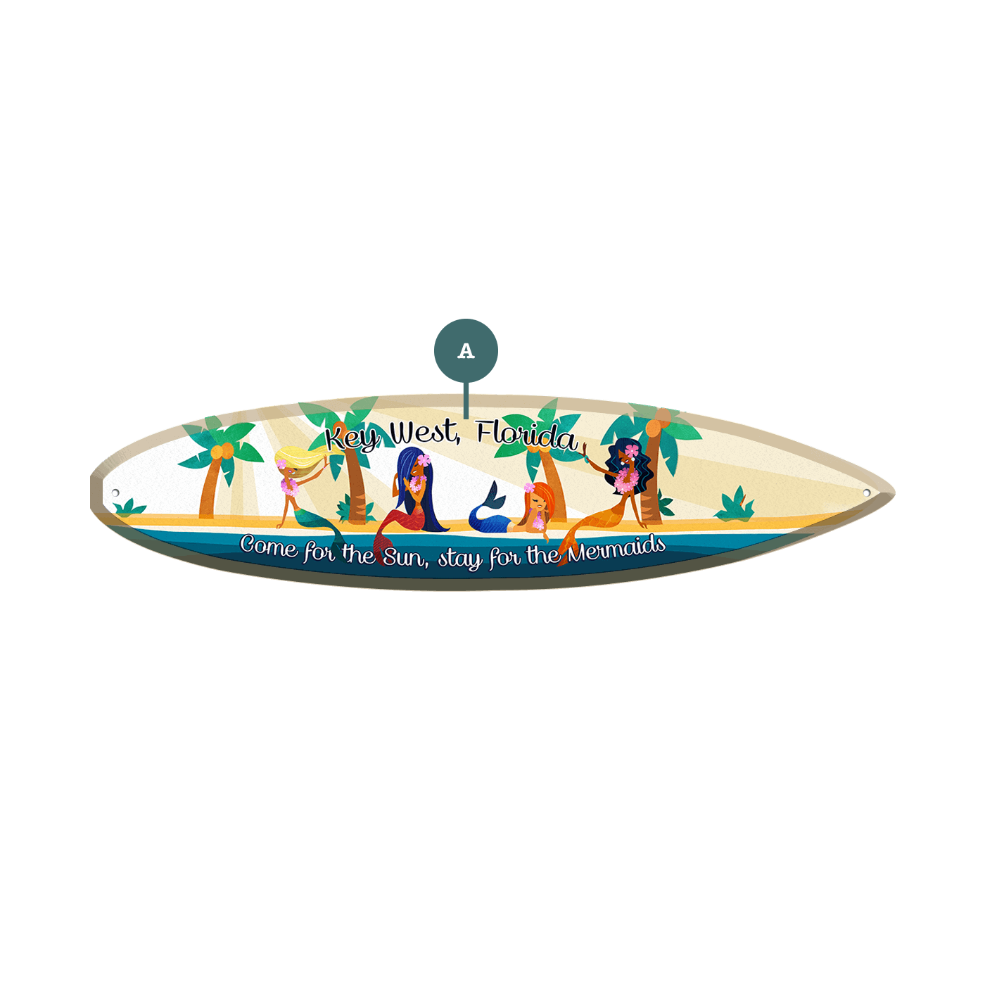 Come for the Sun, Stay for the Mermaids: Personalized - Surfboard Wall Art