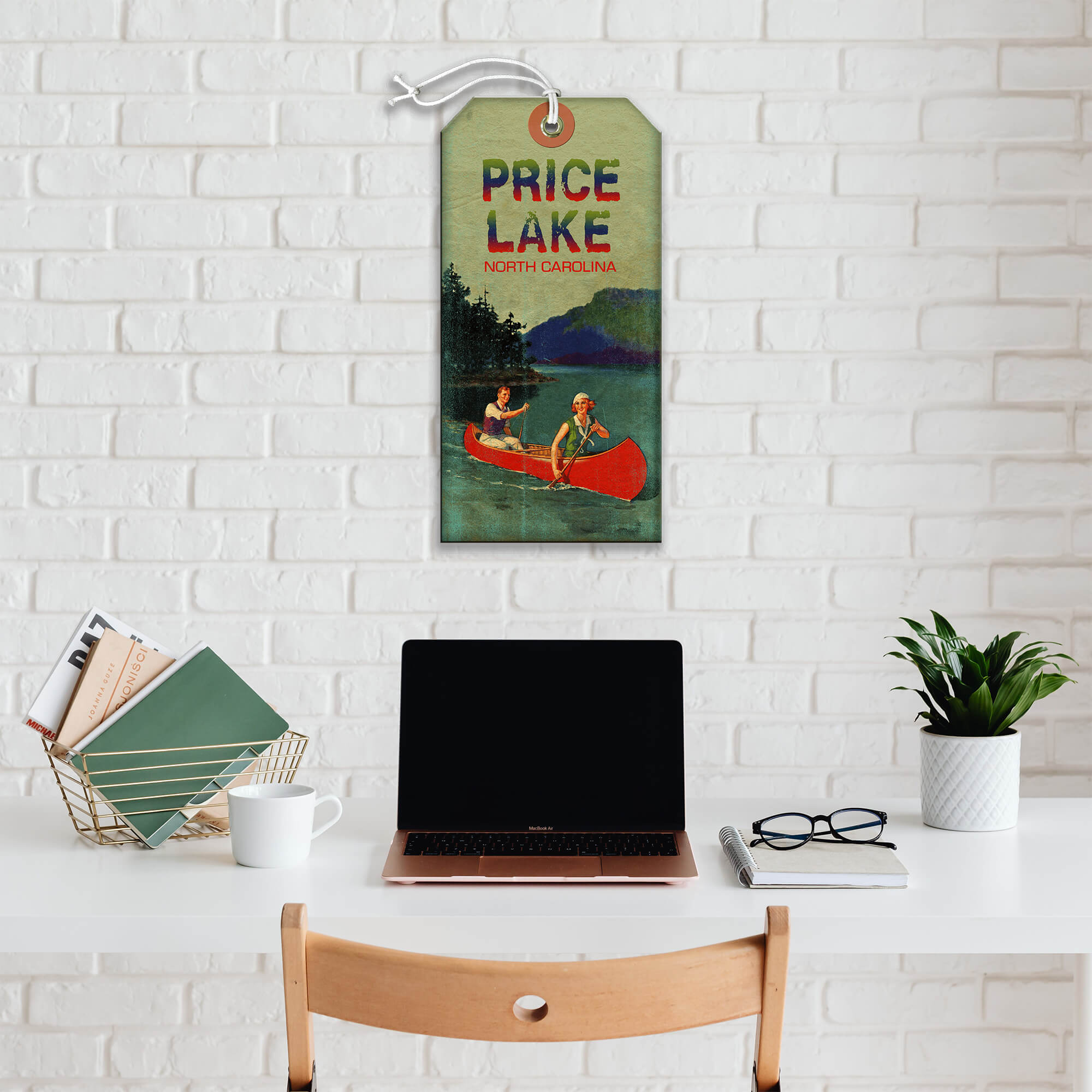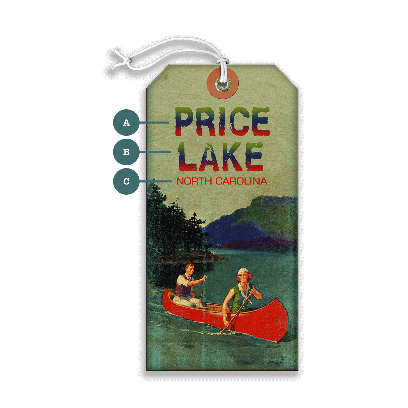 Discover the charm and nostalgia of this beautifully crafted vintage-style artwork. Featuring vibrant colors and a serene lakeside scene with a couple enjoying a canoe ride, this piece captures the essence of adventure and natural beauty. Ideal for adding a touch of rustic elegance to any space, this artwork invites you to embrace the tranquility and splendor of the great outdoors.