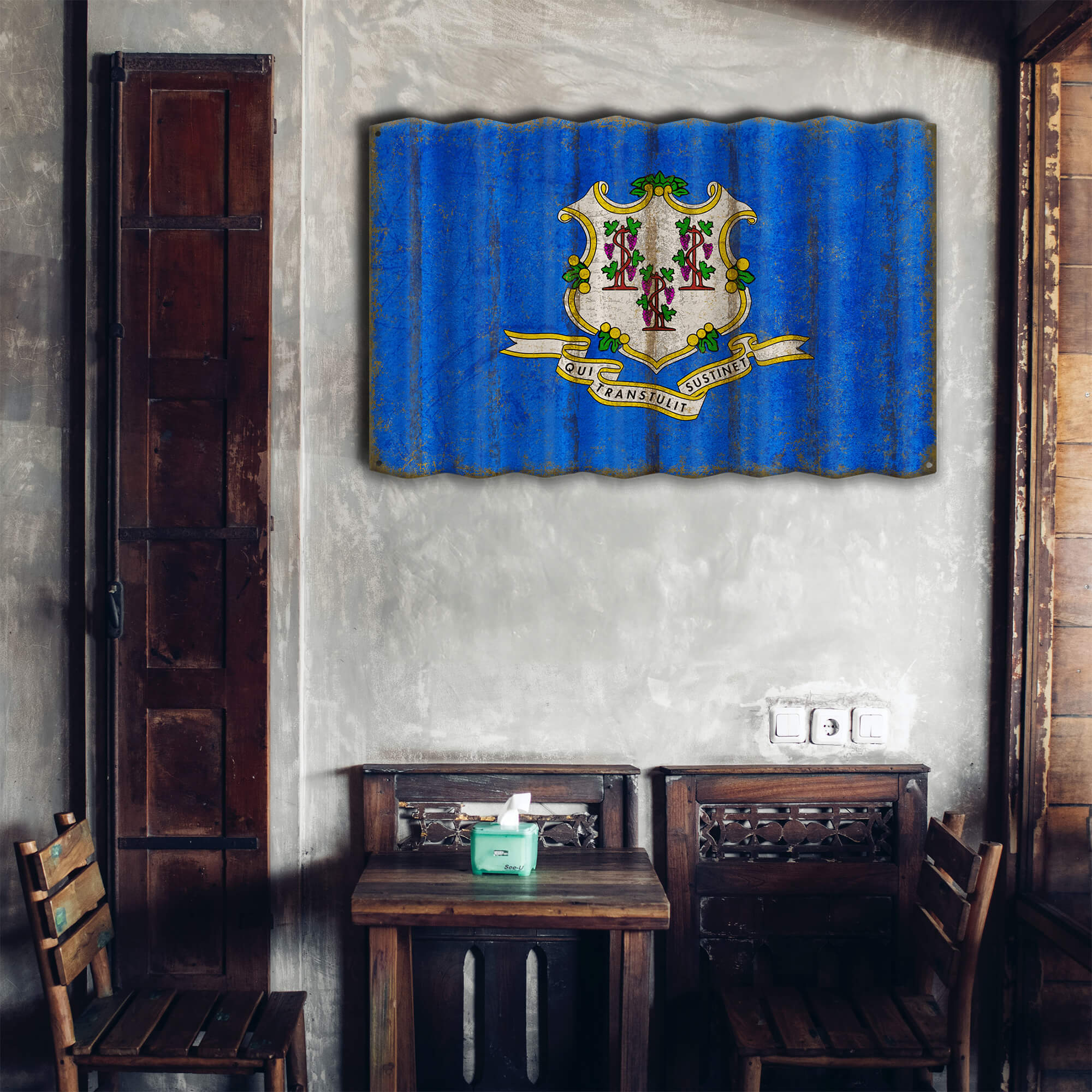 Connecticut State Flag - Corrugated Metal Wall Art