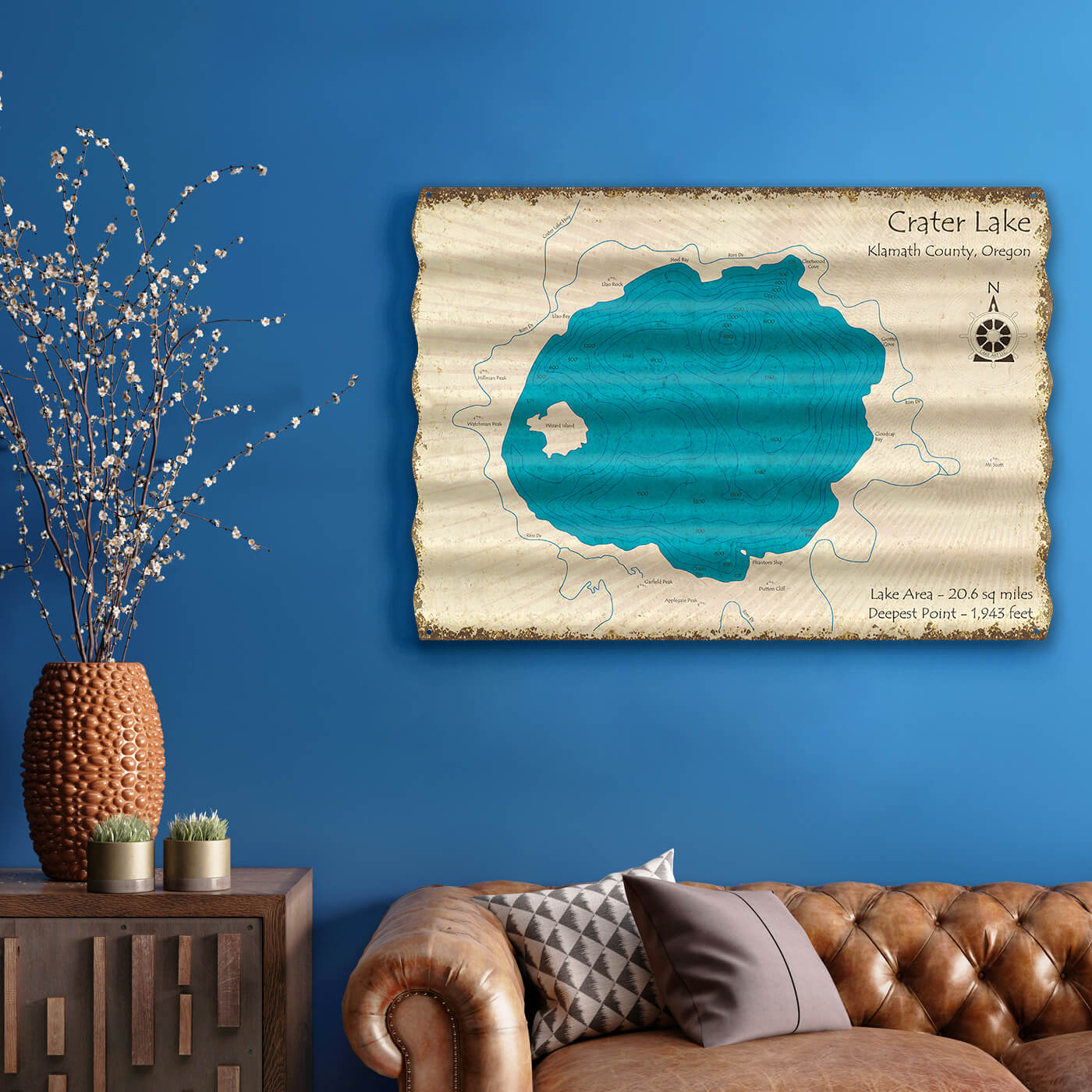Crater Lake, Oregon - Corrugated Metal Wall Art
