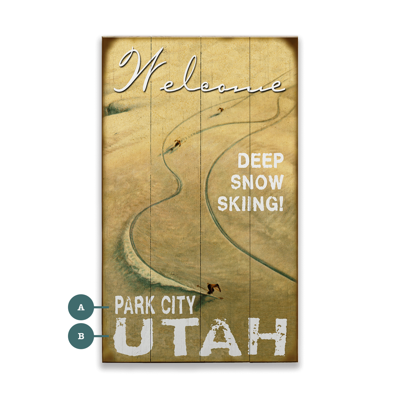Enjoy complimentary personalization for this piece, meticulously handcrafted by our graphic design team. Specify your desired text for points A and B. To ensure perfection in your custom piece, please verify your text carefully. Missing personalization information will revert to our default design as shown. To remove all text from a field, type "Remove" in that field.