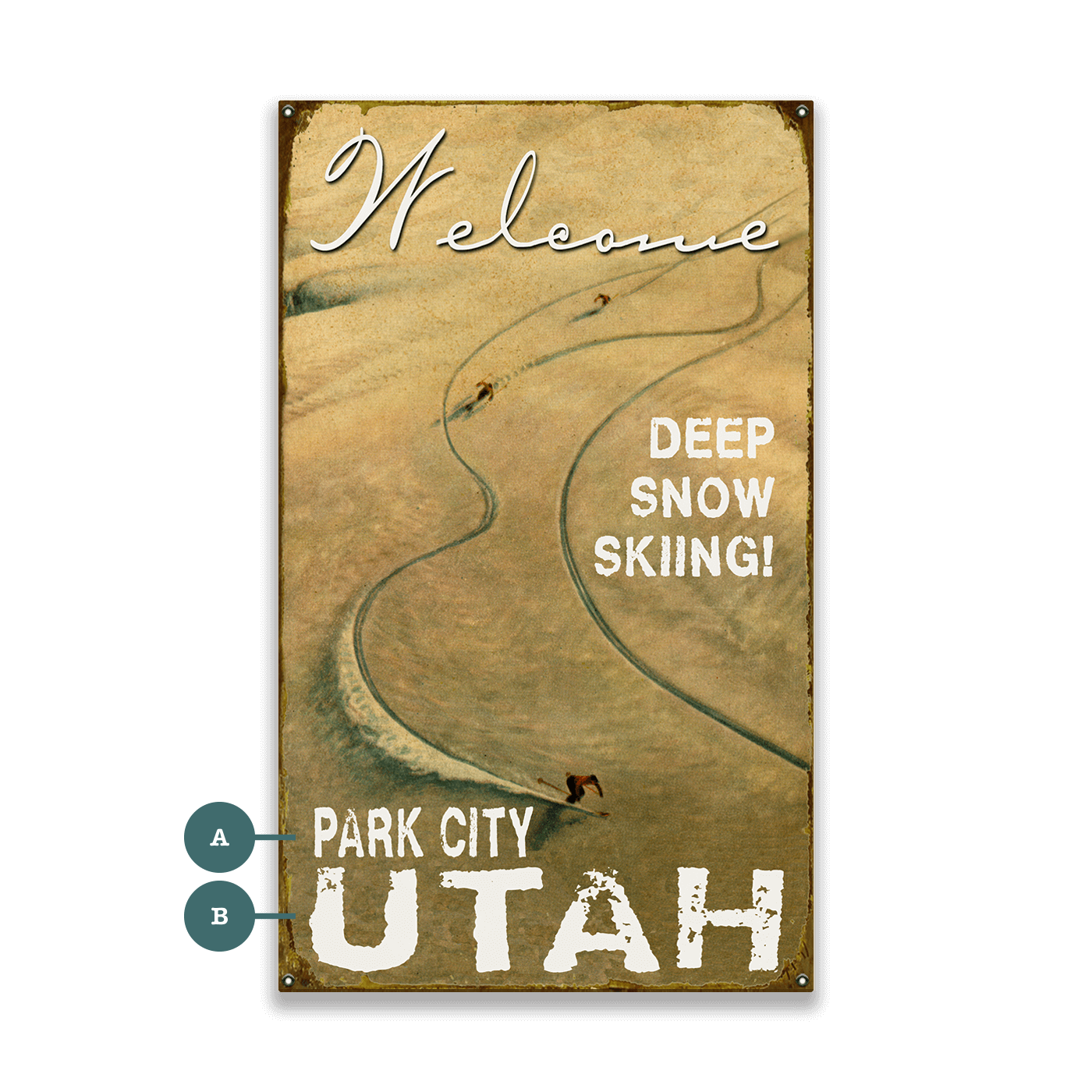 Loyd, who had been dabbling in cartooning and surfing, was encouraged to take an art class taught by Eric Titlebaum, a cartoonist of Playboy Magazine notoriety. With time to tinker during the desolate winters, Laura began asking Loyd to create merchandise for their shop. Recognizing the untapped potential of the skiing crowd, they started designing and producing unique wood and metal signs inspired by vintage ephemera.