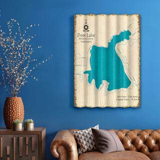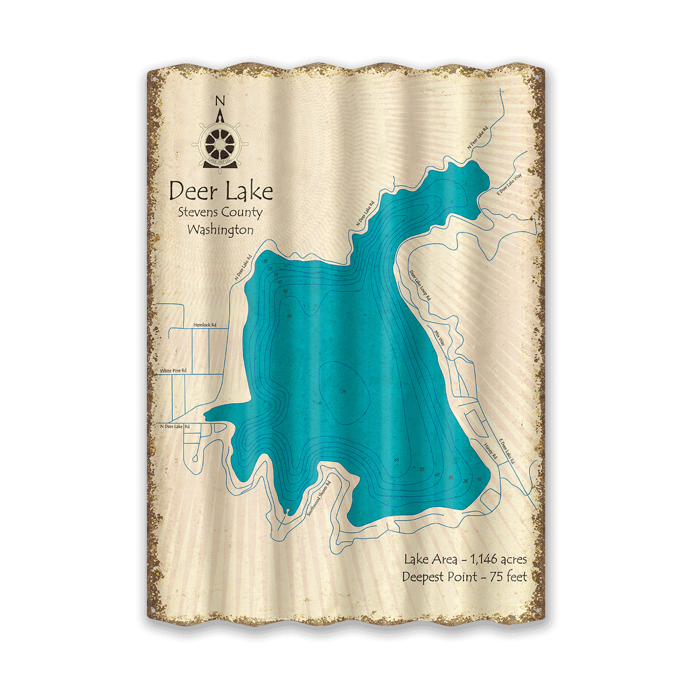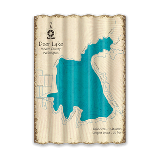 Immerse yourself in the topographic splendor of Deer Lake with this elegantly designed map artwork. Nestled in Stevens County, Washington, this vintage-inspired piece showcases the lake's expansive 1,146-acre surface area and its impressive depth that plunges to 75 feet. This piece of art is not just a visual delight but an informative gem, making it a perfect addition for those who appreciate the blend of natural beauty and cartographic precision. Bring the allure of Deer Lake into your space and celebrate the geography of Washington in style.
