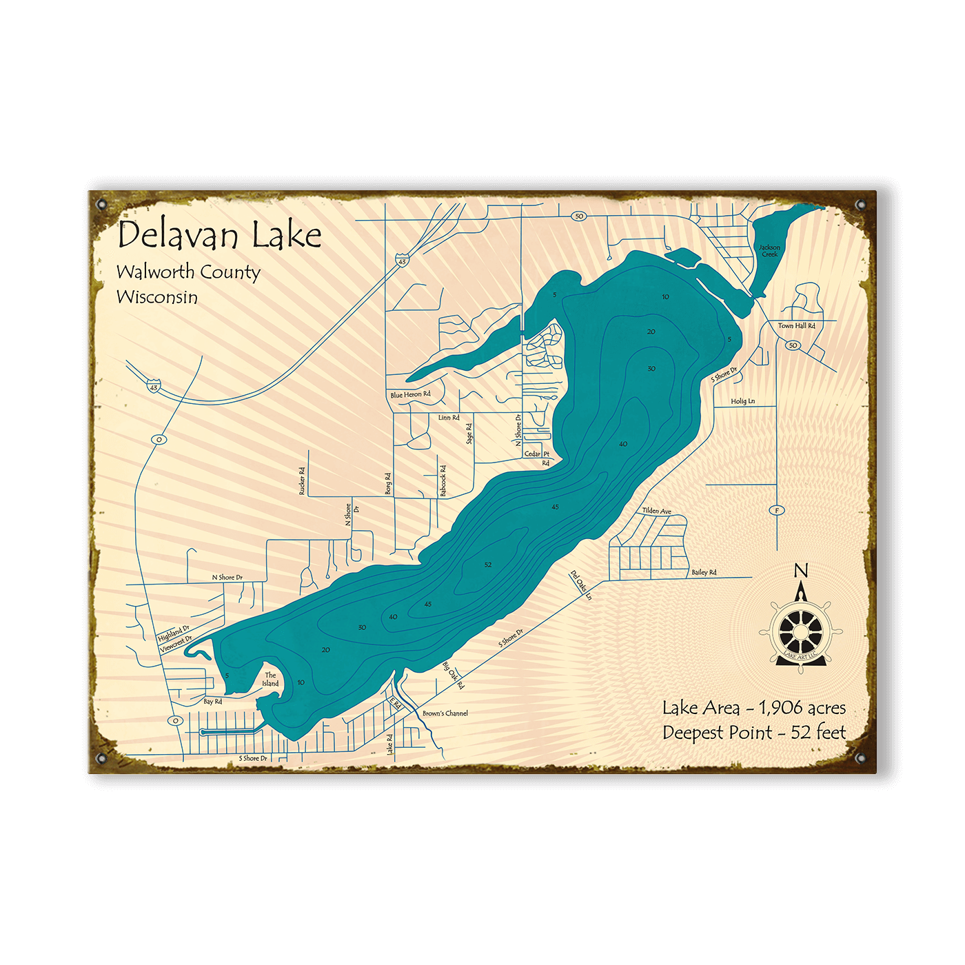 With its vintage style and stunning design, our Delavan Lake map sure to be a focal point in any home or office.