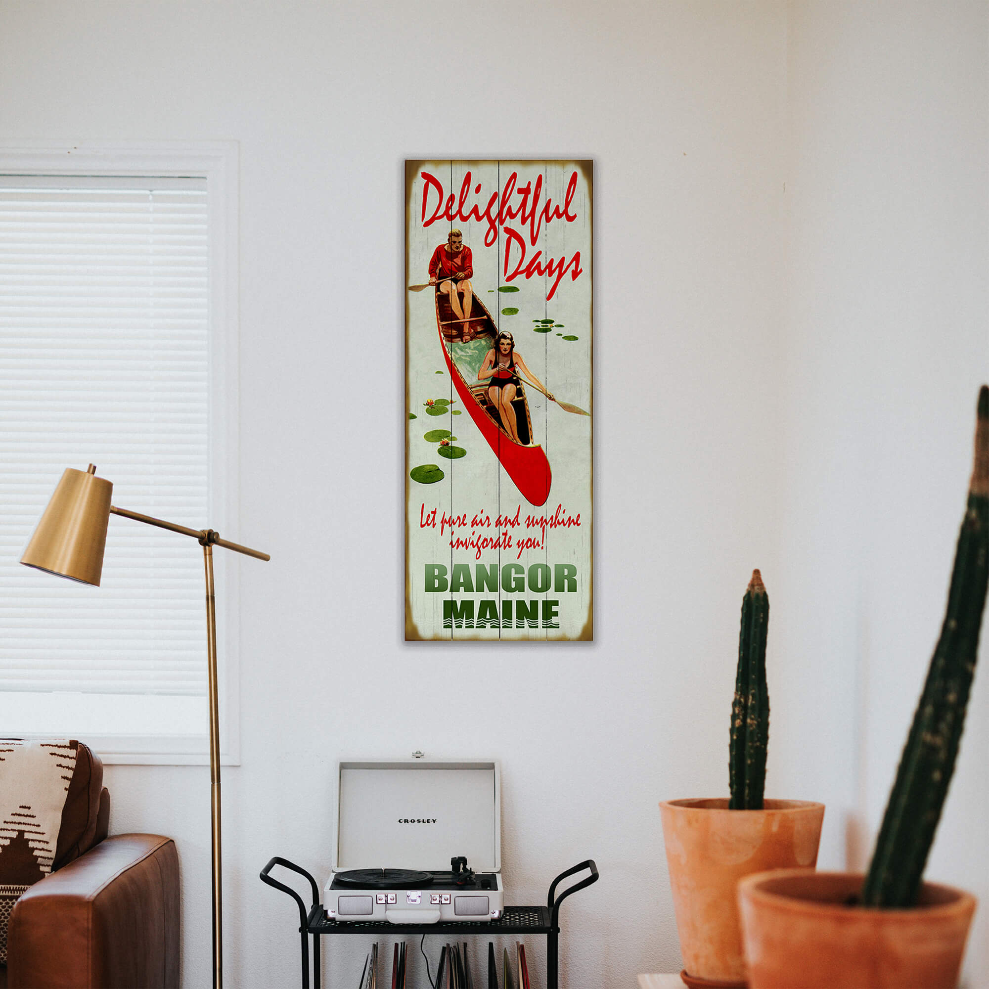 Experience the charm of this captivating vintage-style art piece titled "Delightful Days." The artwork invites viewers to relive the nostalgic pleasure of canoeing on serene waters, as depicted by a couple enjoying their paddle through a picturesque setting. Ideal for lovers of retro aesthetics, this art print is a delightful addition to any home or office, promising to inspire and refresh.