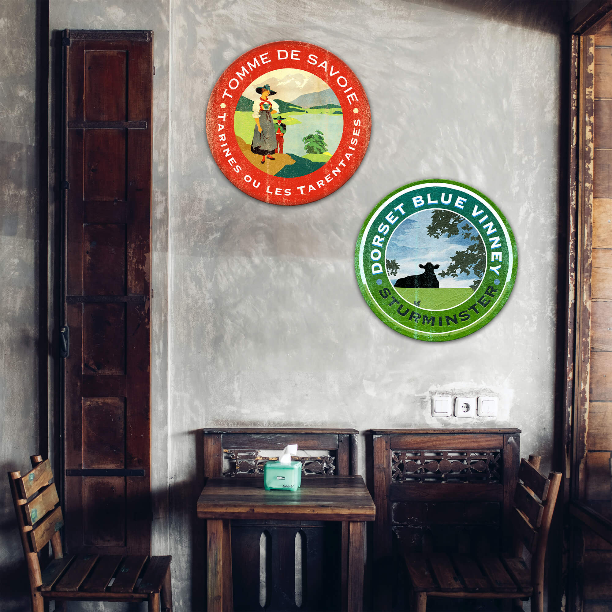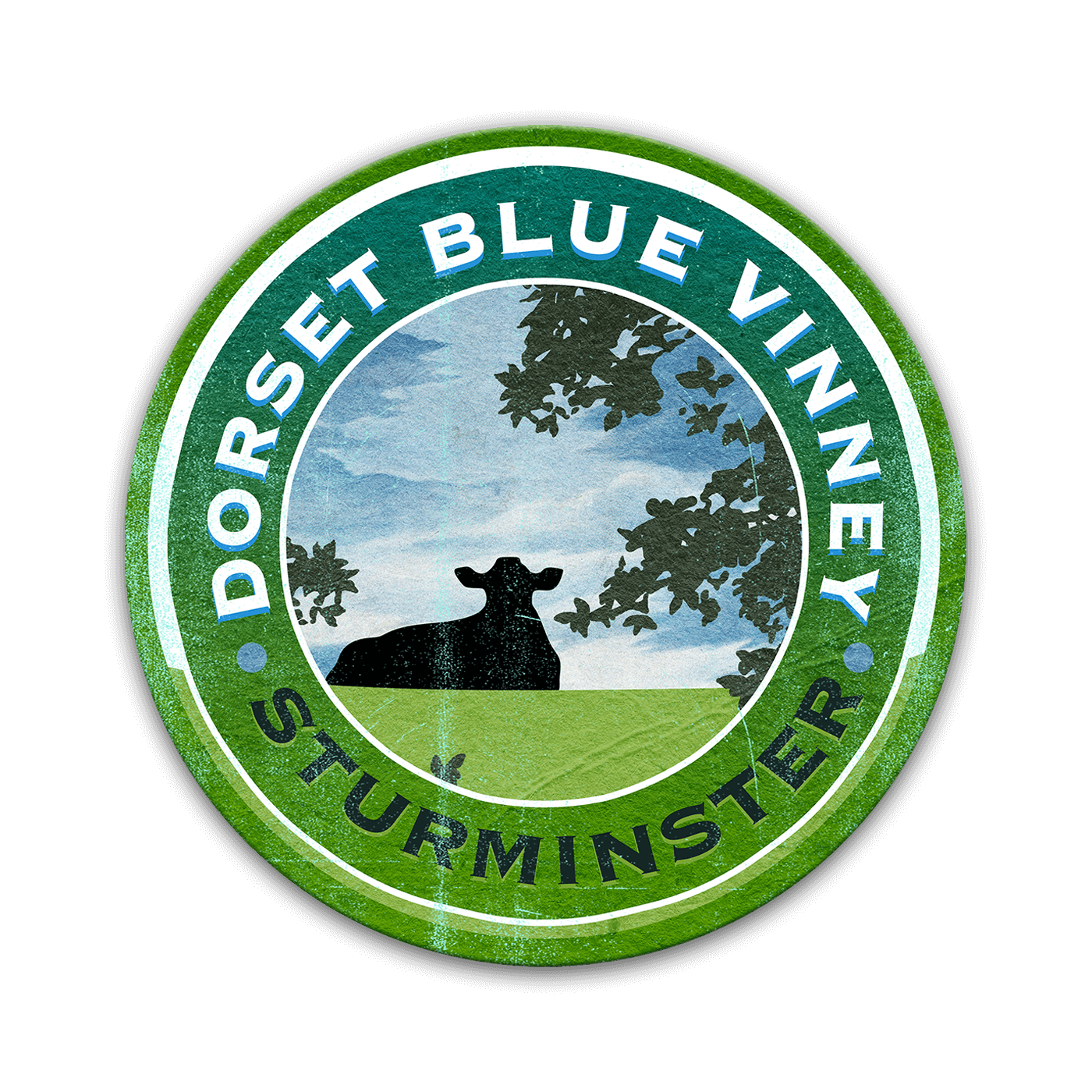 This vintage-style cheese label artwork celebrates Dorset Blue Vinney (also spelled Vinny), a traditional English blue cheese with deep roots in the countryside of Dorset. Featuring a silhouette of a cow resting beneath a tree against a rolling green landscape, the design reflects the pastoral charm of Sturminster Newton, the historic heart of this cheese’s production. Once a farmhouse staple made from skimmed milk, Dorset Blue Vinny is known for its crumbly texture and robust, tangy flavor, achieved through slow aging and natural blue veining. A rare and treasured cheese, it pairs wonderfully with hearty bread, chutneys, and full-bodied ciders. Ideal for cheese lovers, history enthusiasts, and those who appreciate British culinary traditions, this piece brings a rustic elegance to any farmhouse kitchen, dining space, or specialty cheese shop.