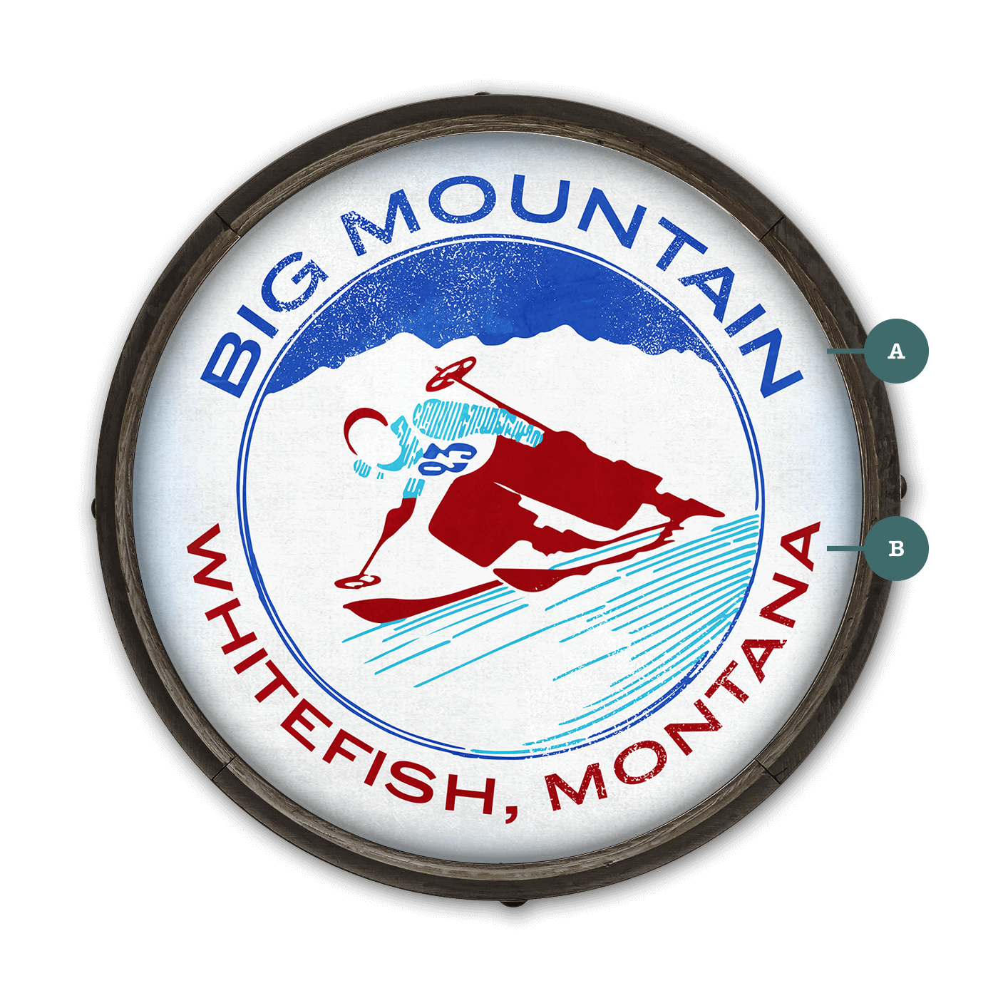 This bold and dynamic artwork celebrates the exhilarating spirit of alpine skiing with its vibrant retro design. Featuring a skier in mid-action framed by a majestic mountain backdrop, it captures the thrill of carving down snowy slopes. The clean lines, patriotic color palette, and vintage typography evoke a timeless charm, perfect for ski enthusiasts and lovers of mountain culture. Whether displayed in a lodge, cabin, or recreational space, this piece brings the energy and excitement of the slopes to life.