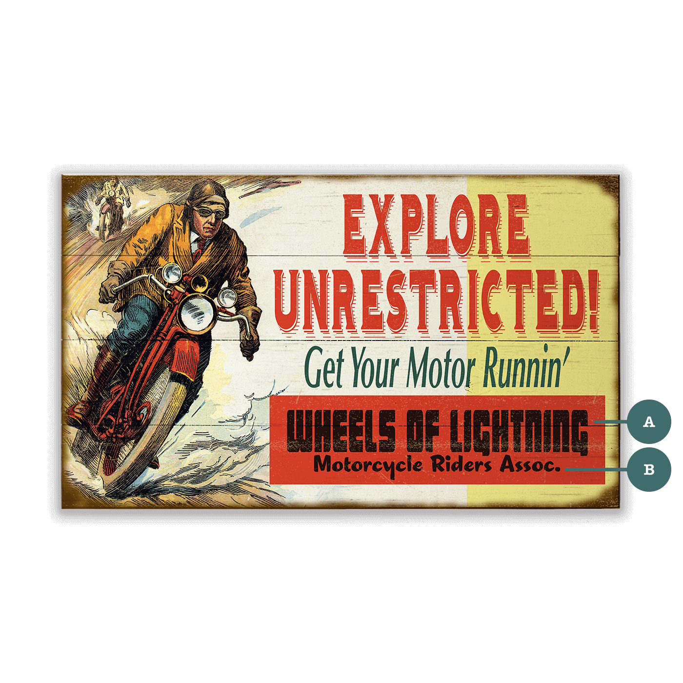 Enjoy complimentary personalization for this piece, meticulously handcrafted by our graphic design team. Specify your desired text for points A and B. To ensure perfection in your custom piece, please verify your text carefully. Missing personalization information will revert to our default design as shown. To remove all text from a field, type "Remove" in that field.