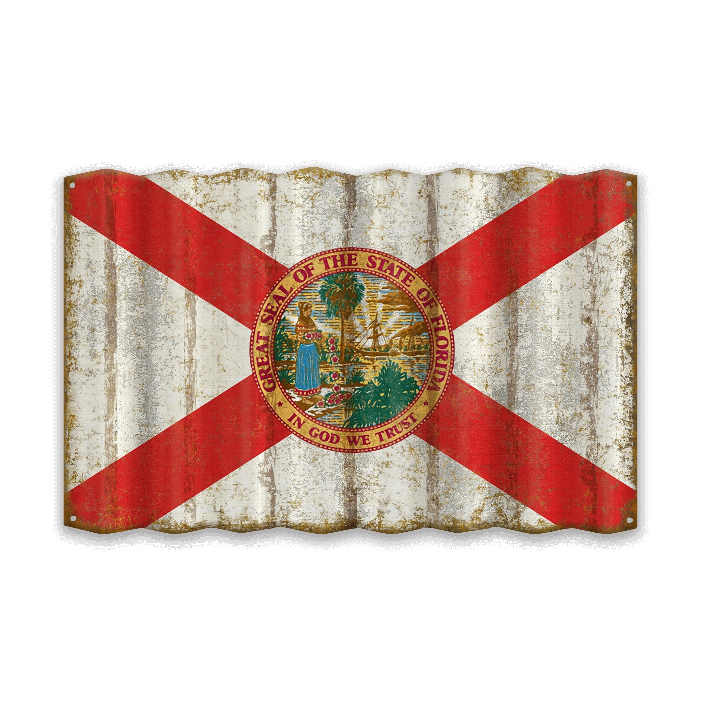 Celebrate the pride and heritage of every U.S. state with our Rustic State Flags Collection. Each flag stays true to its original design, while expertly applied distressing adds a weathered, vintage charm. The artwork is printed on a sheet of corrugated aluminum for an added touch of appeal. These pieces are not only emblematic representations but also timeless keepsakes.