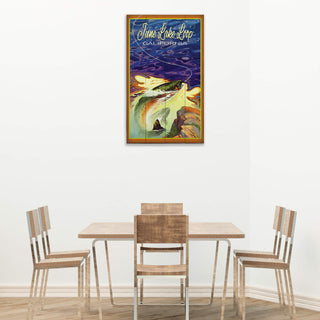 Immerse yourself in the thrill of fishing with this vibrant artwork. Featuring a dynamic scene of a rainbow trout against a colorful backdrop, this piece captures the excitement and beauty of nature. The rich hues and striking composition make it a perfect addition to any space, ideal for cabins, lodges, or nature-themed decor.