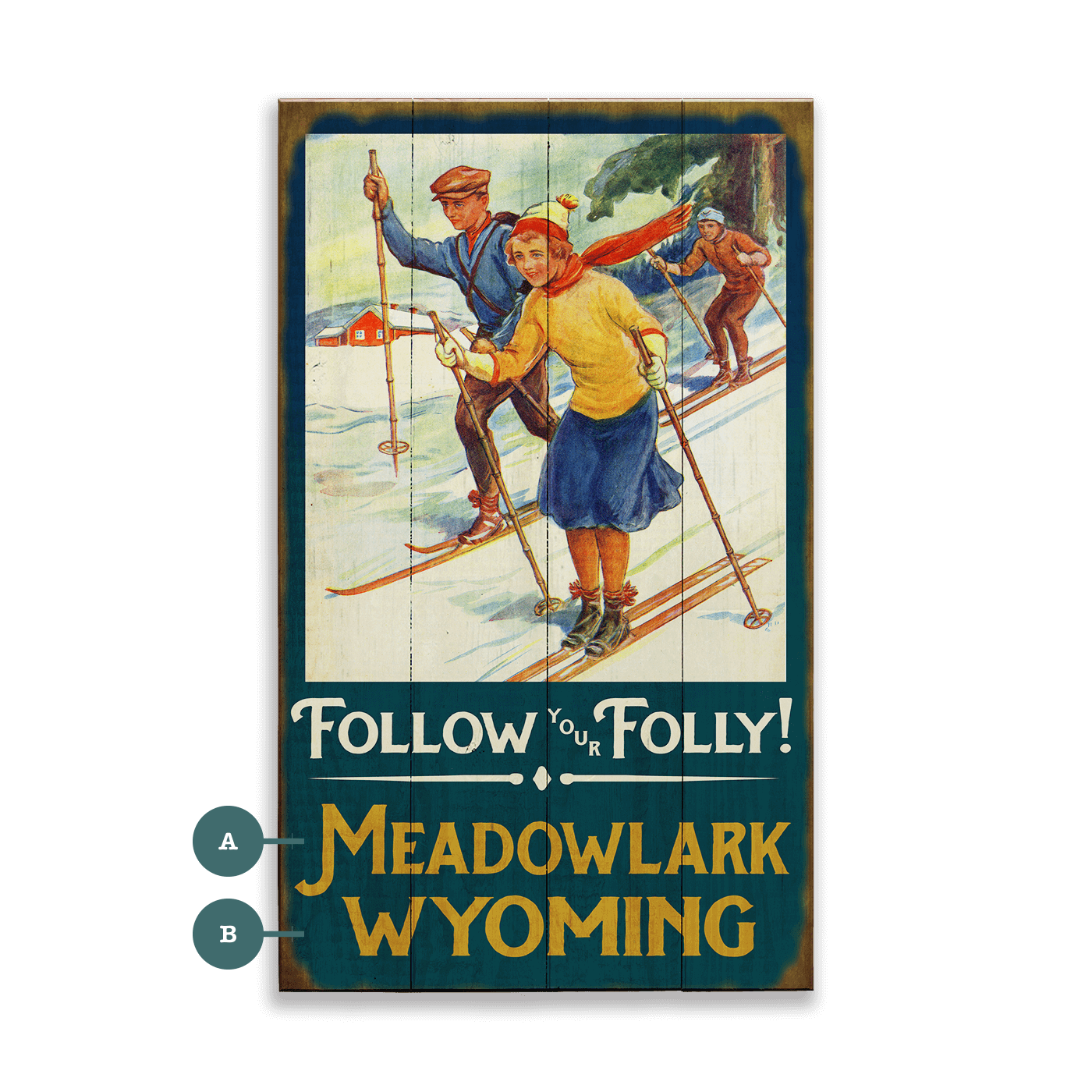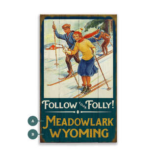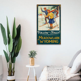 "Follow Your Folly!" encapsulates the joy and camaraderie of winter sports in a charming, vintage-style artwork. This piece portrays a lively scene of friends enjoying a day on the ski slopes, evoking a sense of adventure and carefree fun. The playful imagery and inviting slogan make it a perfect decorative addition for those who cherish the spirit of old-fashioned winter getaways. Ideal for hanging in ski cabins, homes, or any space that appreciates a touch of whimsical nostalgia, this artwork is sure to inspire smiles and stories of snowy escapades.