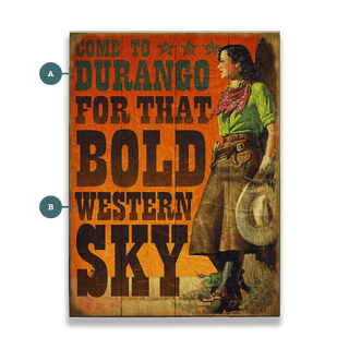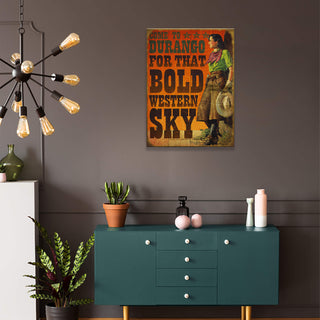 This artwork embodies the adventure and romance of the American West with a striking depiction of a confident cowgirl against a fiery sunset sky. The rich, warm tones and bold typography evoke the beauty and grandeur of open landscapes, inviting viewers to embrace the untamed frontier. The intricate textures and weathered design make it a perfect piece for western enthusiasts, ranchers, and those who appreciate the spirit and independence of cowboy culture. Ideal for rustic decor, rodeo-inspired spaces, or anyone looking to capture the essence of the wild, open range.