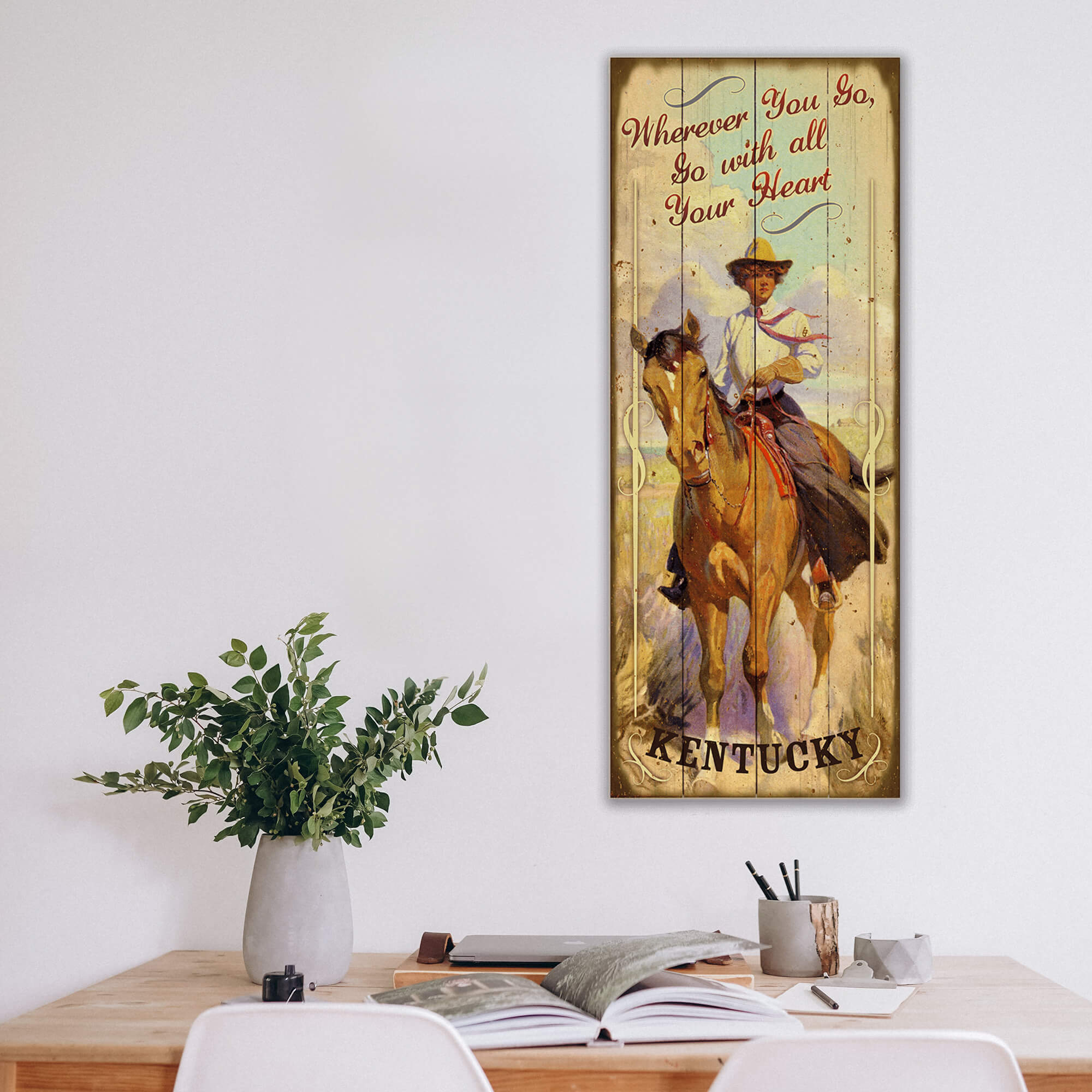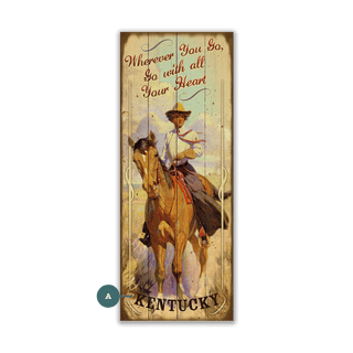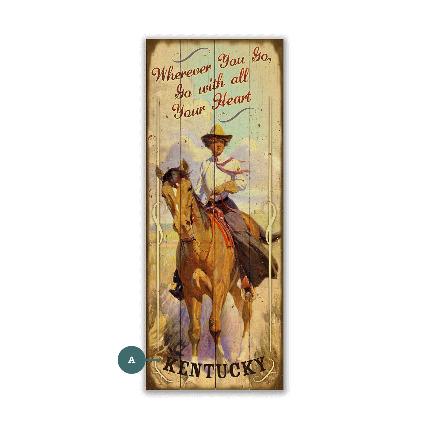 This vintage-style artwork captures the adventurous spirit of the open range with a beautifully detailed depiction of a cowgirl riding confidently across the landscape. The warm, earthy tones and distressed finish give it a nostalgic charm, evoking the freedom and independence of the western frontier. An inspiring quote adds a heartfelt touch, making this piece perfect for equestrian enthusiasts, lovers of country life, or anyone who embraces the journey ahead with passion and determination. Ideal for rustic decor, ranch homes, or western-themed spaces, it brings a timeless sense of adventure and resilience to any setting.