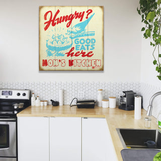 Step into the heartwarming embrace of "Mom's Kitchen" with this vintage-inspired sign. The charming artwork, featuring whimsical script and a homely illustration, captures the essence of home cooking. With a nostalgic nod to the classic kitchens where everyone is welcome and the food is always made with love, this sign is perfect for creating a cozy, inviting atmosphere. Whether it's for your own home or as a gift for someone who cherishes those cherished family meals, this customizable sign is a tribute to the timeless tradition of Mom's best.