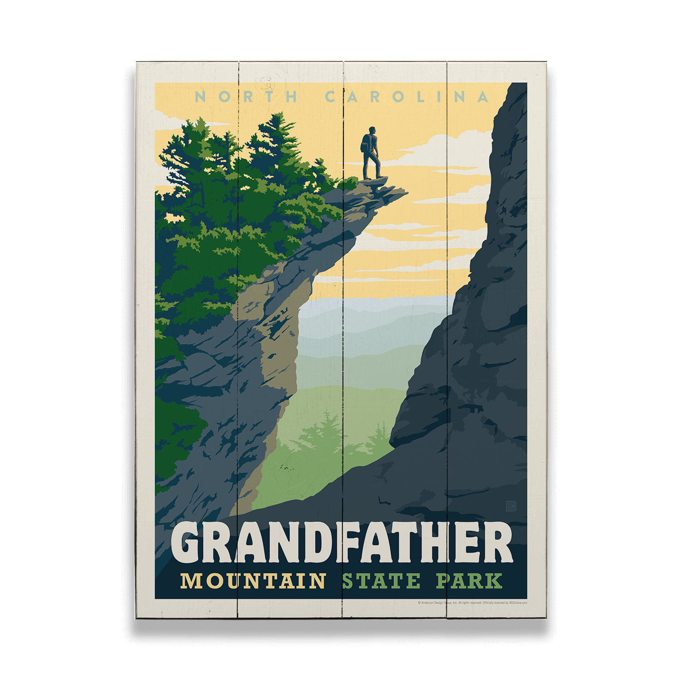 Embrace the thrill of high-altitude adventure with this stunning artwork of Grandfather Mountain State Park. Featuring a hiker standing on a dramatic rocky outcrop, the piece captures the awe-inspiring views and rugged terrain that define this Appalachian gem. Known for its swinging bridge, rare ecological diversity, and challenging trails, Grandfather Mountain is a haven for explorers and nature lovers alike. The layered mountain backdrop and towering cliffs reflect the park’s untamed beauty, making this artwork a bold tribute to one of North Carolina’s most iconic landscapes.