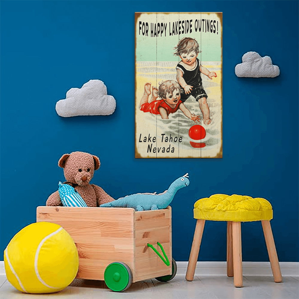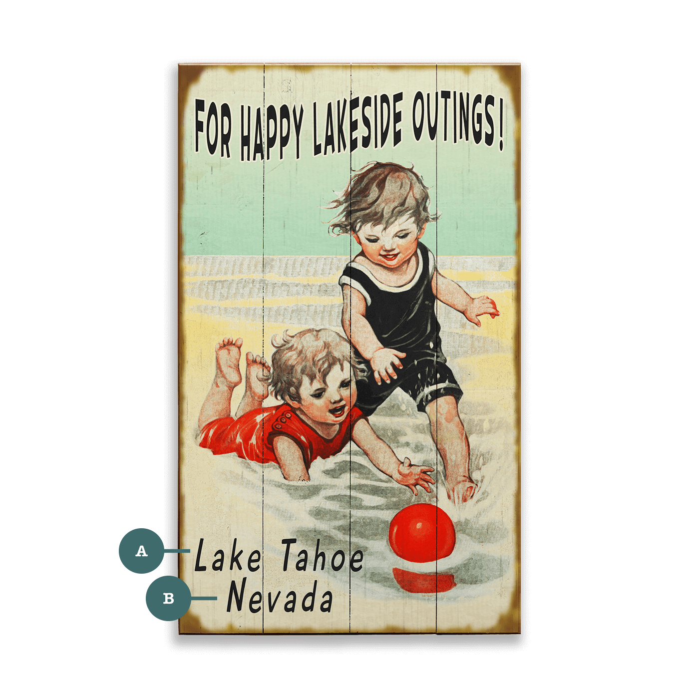 Full of innocence and playful charm, this heartwarming artwork captures the delight of childhood at the lake. Two young children splash in the shallow water, giggling as they chase a bright red ball through the gentle surf. Dressed in vintage swimsuits and surrounded by soft sand and waves, they embody the carefree joy of a perfect lakeside outing. With its nostalgic color palette and cheerful message, this piece is a sweet tribute to sunny memories and simple pleasures. Ideal for lake homes, family spaces, or vintage-inspired decor, it’s a reminder that the happiest days are often the simplest ones.