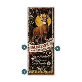 Step into the charm of a bygone era with this vintage-inspired artwork, perfect for adding a touch of rustic elegance to any space. Featuring an iconic depiction of a majestic deer against a moonlit backdrop, this piece encapsulates the essence of classic lodge decor. The artwork is adorned with playful, old-fashioned typography highlighting desirable amenities like 'Indoor Plumbing,' 'Heated Rooms,' and 'Clean Towels,' evoking the welcoming spirit of traditional inns. Ideal for enhancing the ambiance of a home, hunting cabin, or any retreat that appreciates a nod to heritage and the great outdoors.