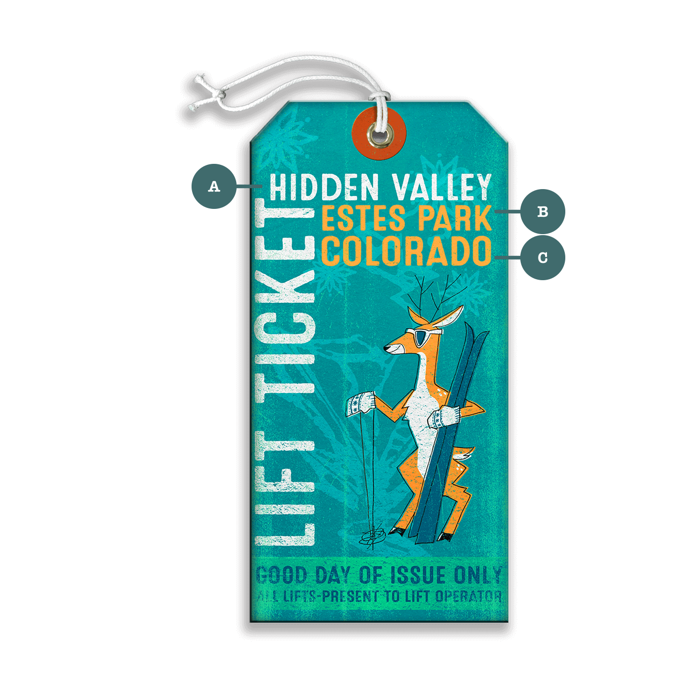 Carry a piece of Hidden Valley, Estes Park, Colorado, with you wherever you go with this quirky luggage tag. The design features a retro-inspired deer, capturing the fun and adventure of this iconic winter spot. A perfect accessory for travelers who love the slopes, this luggage tag adds a personal touch to your travel gear.