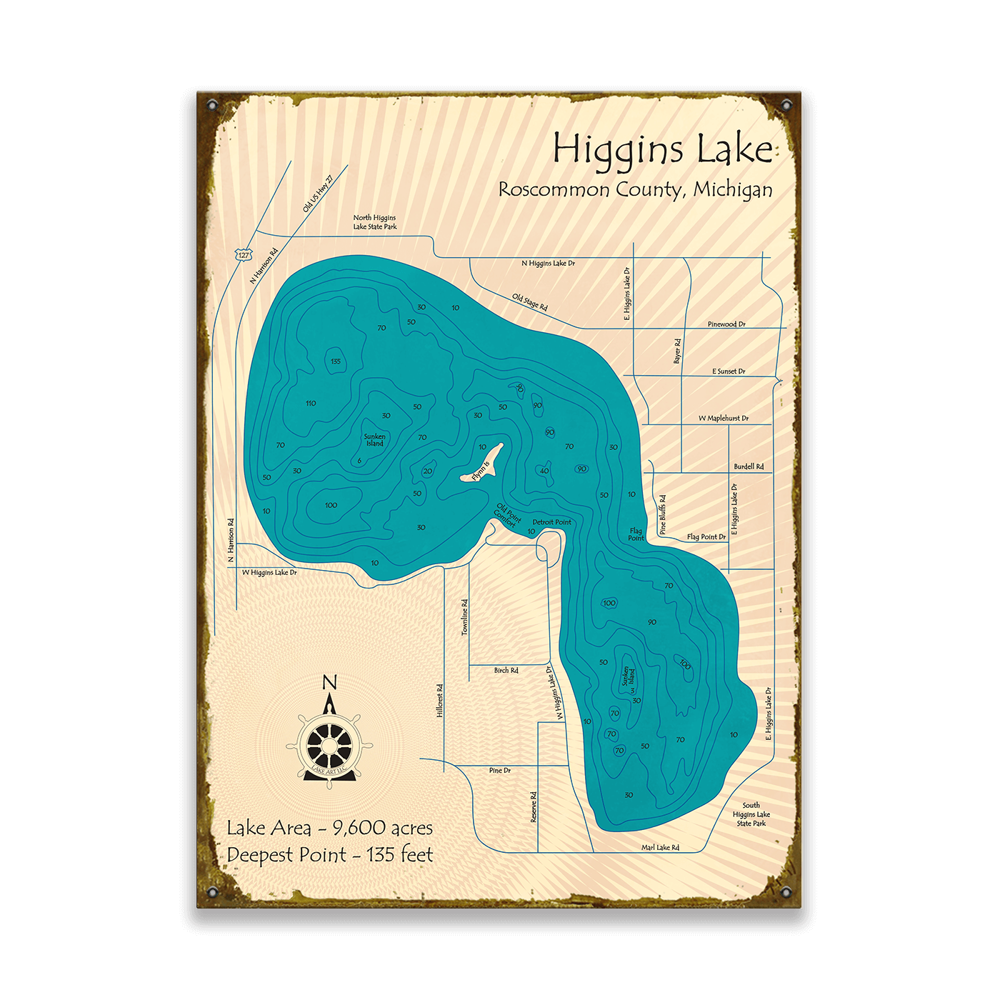 Higgins Lake, Michigan - Wood & Metal Wall Art