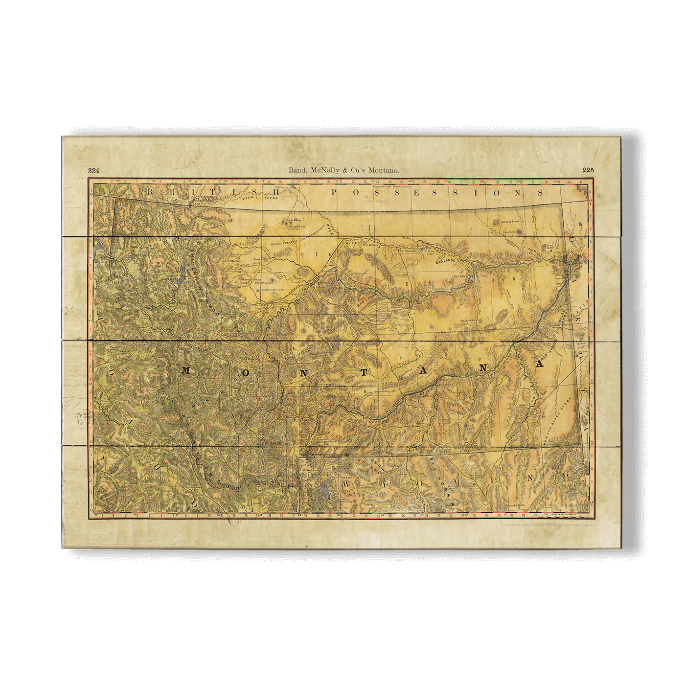 Discover the geographical intricacies of Montana with this richly detailed vintage map. Dating back to the late 19th century, this map showcases the diverse landscape of Montana, featuring its vast plains, towering mountain ranges, and intricate river systems. This map is a treasure for anyone interested in cartography, the development of the American West, or the specific historical evolution of Montana. Ideal for display in an educational setting, a historical collection, or as a unique decorative piece in your home, it invites viewers to explore a bygone era through the lens of detailed geographic representation.