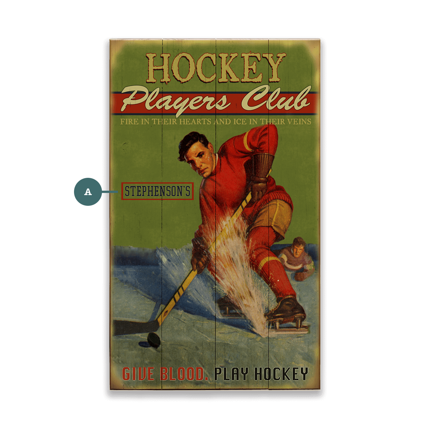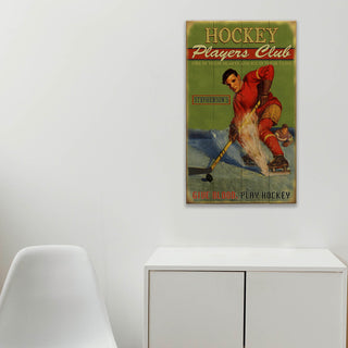 This vintage-inspired hockey wall art captures the spirit and intensity of the game. Featuring a classic image of a hockey player in action, the piece is enhanced by the "motivational" slogan, "Give Blood, Play Hockey." The retro color palette and distressed background give it an authentic, old-school feel, making it a perfect addition to any sports room, man cave, or space dedicated to hockey enthusiasts. This artwork is ideal for celebrating the passion, grit, and camaraderie that define the sport of hockey.