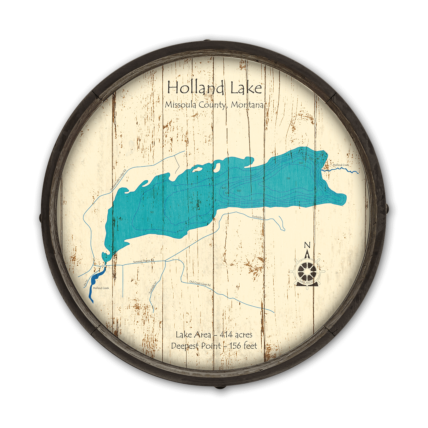 Celebrate the natural beauty of Holland Lake in Missoula County, Montana, with this intricately detailed map showcasing the bathymetric contours of its shoreline. Spanning 414 acres with a deepest point of 156 feet, Holland Lake is a breathtaking destination for outdoor enthusiasts, offering pristine waters, scenic hiking trails, and abundant wildlife. Nestled in the Swan Valley near the Bob Marshall Wilderness, this lake is a true gem for those who love kayaking, fishing, and exploring Montana’s rugged landscapes. Whether you cherish memories of adventures on the lake or dream of visiting, this unique piece is the perfect way to honor a beloved destination.