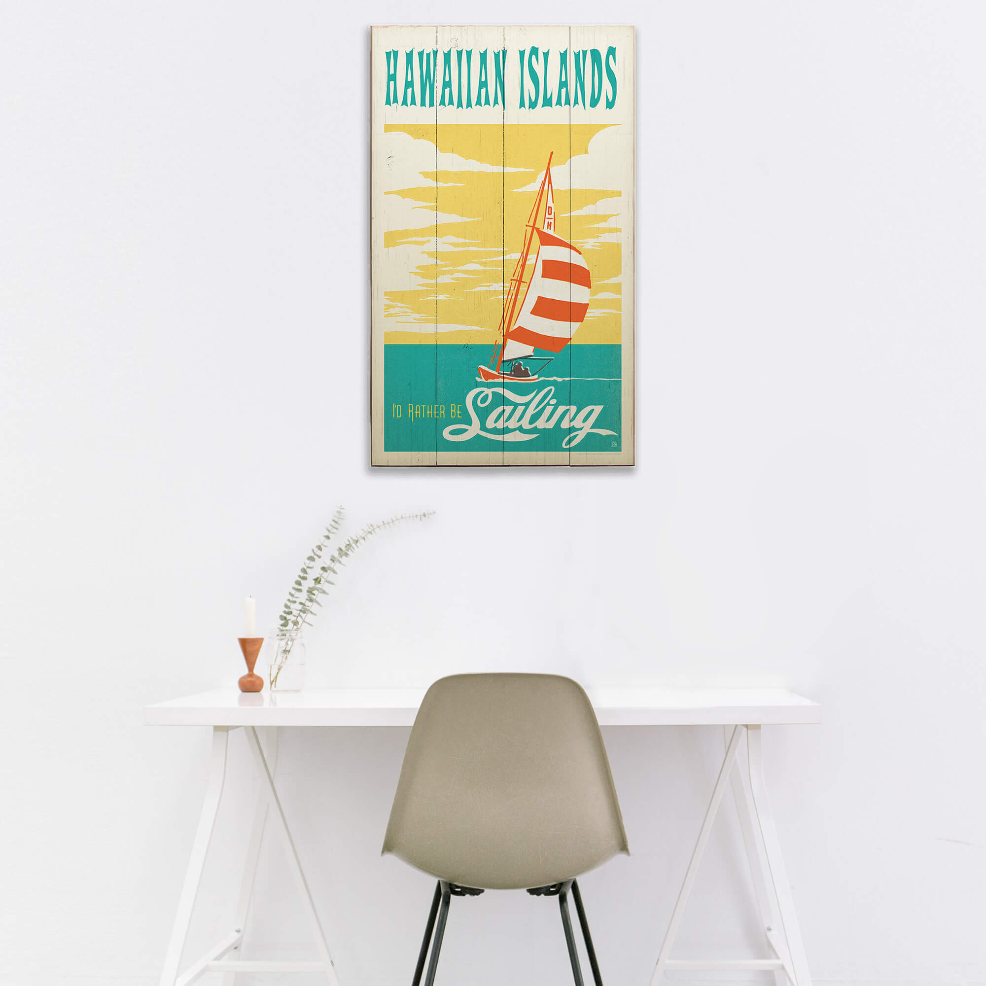 Set sail to paradise with this "I'd Rather Be Sailing" print, a vibrant tribute to the spirit of the Aloha State. This piece captures the essence of Hawaii's laid-back lifestyle and pristine sailing conditions, featuring a solitary sailboat cruising on the turquoise waters under the golden island sun. It's an idyllic representation for anyone who dreams of the seafaring life. Whether it's to remind you of past voyages or to inspire future oceanic adventures, this print is a must-have for enthusiasts of nautical escapades and island aesthetics alike.
