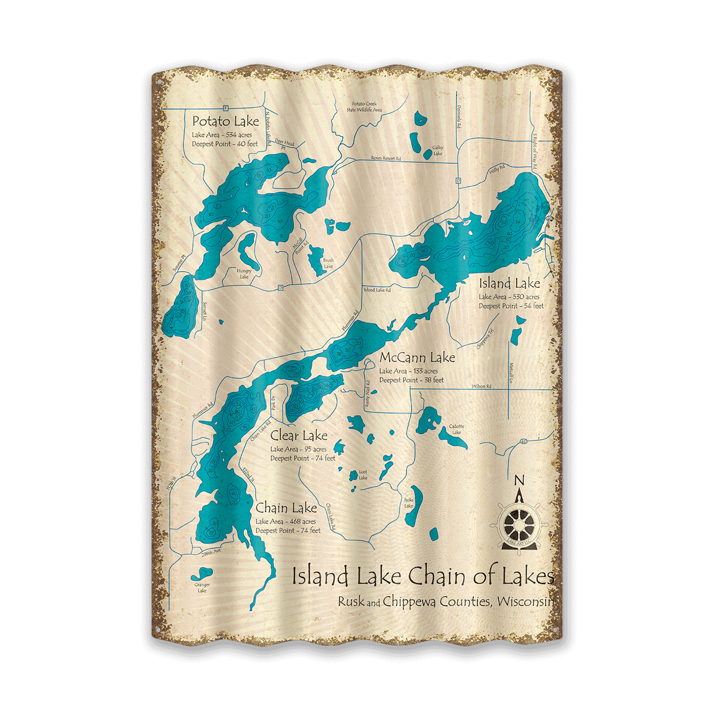 Island Lake Chain of Lakes, Wisconsin - Corrugated Metal Wall Art