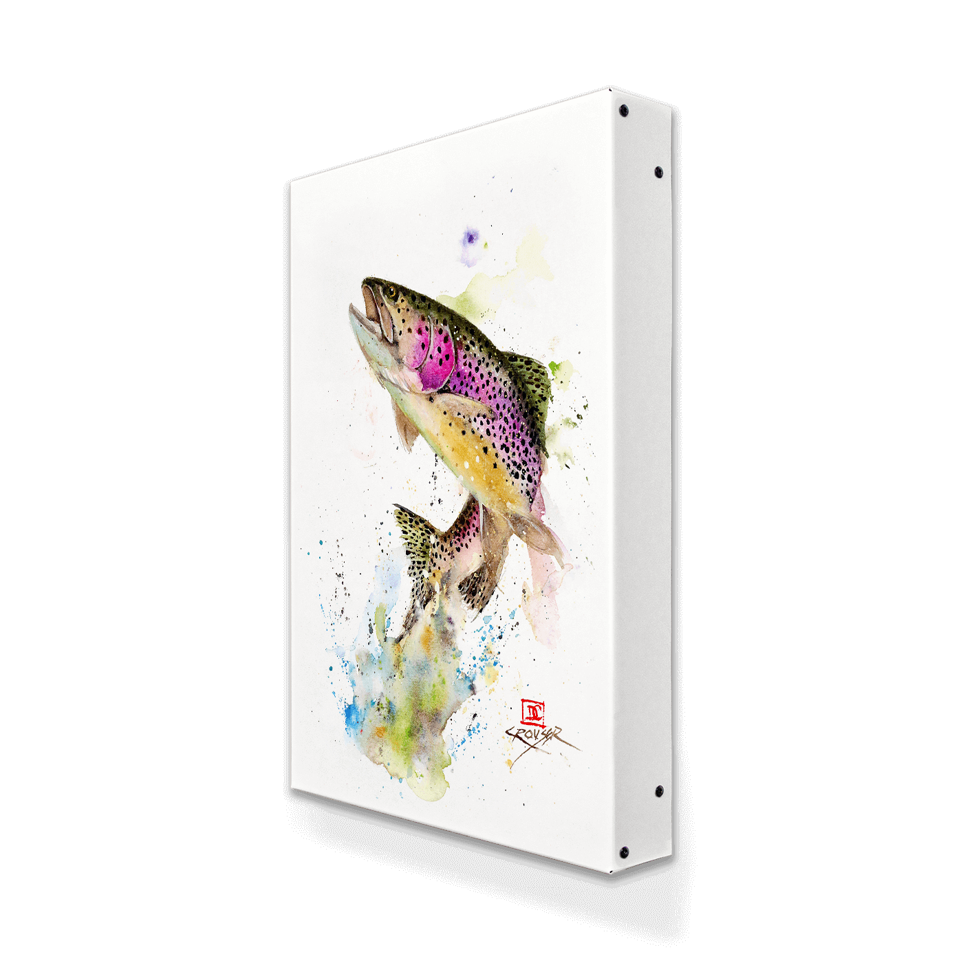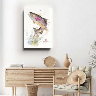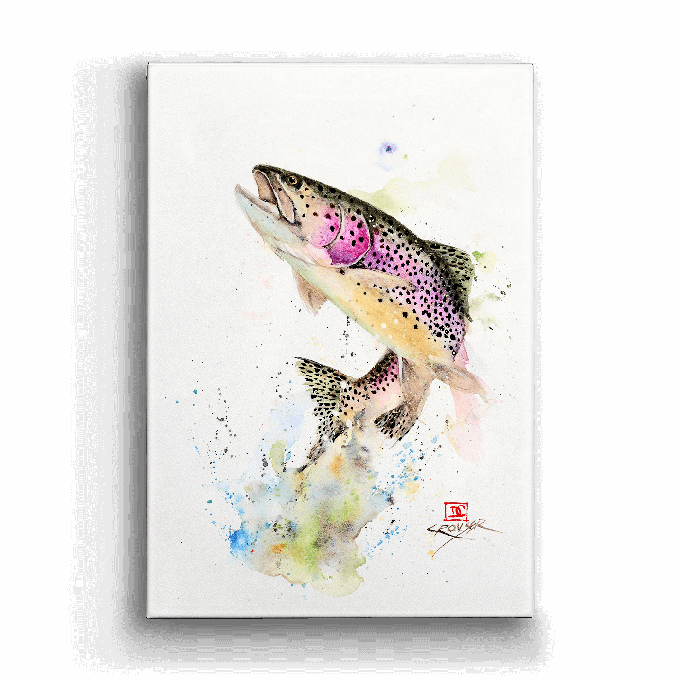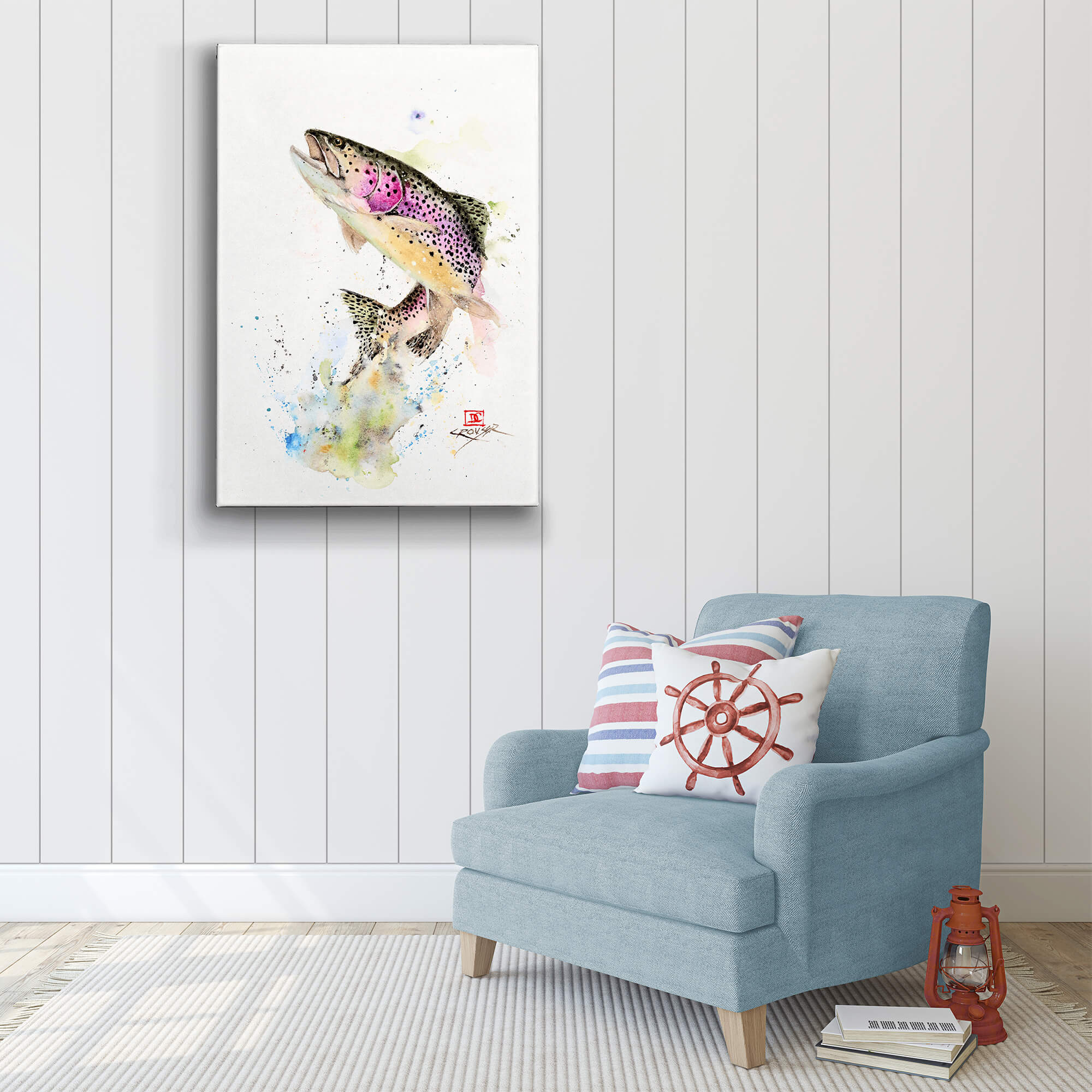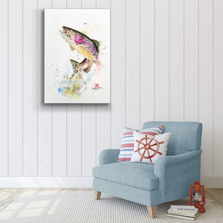 Dive into the dynamic beauty of aquatic life with this stunning watercolor painting of a jumping Rainbow trout. Captured in mid-leap, the trout is vividly detailed, with splashes of color that enhance its swift motion and the shimmering scales. This artwork is perfect for anglers, nature enthusiasts, and anyone captivated by the beauty of water and wildlife. It brings a sense of movement and the thrill of the catch to any space, making it a striking addition to both modern and rustic decors.