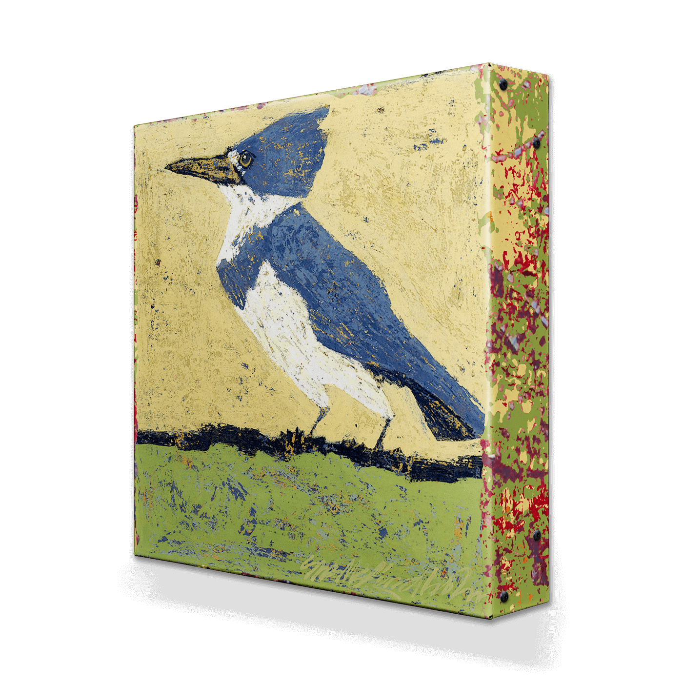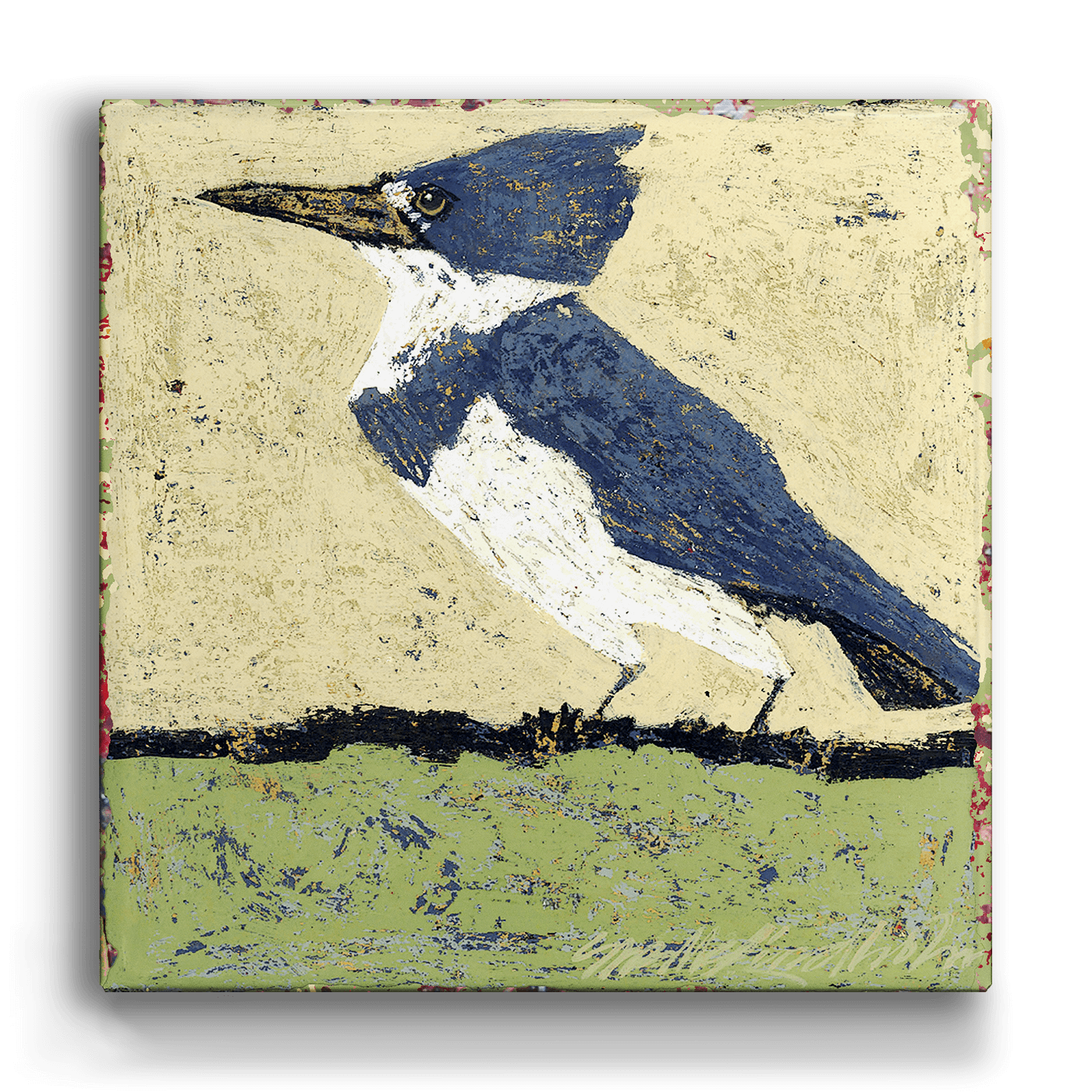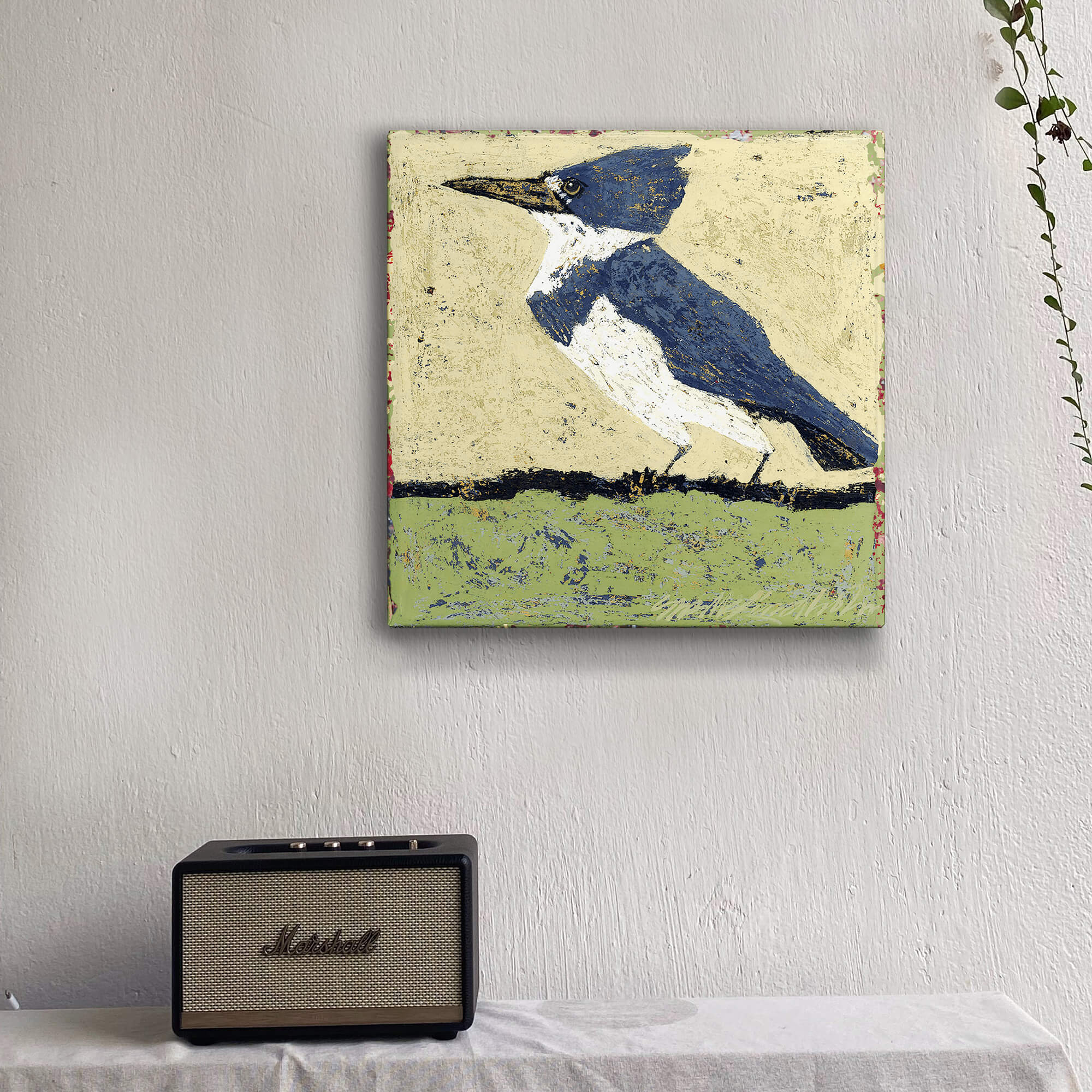 Add a touch of personality and sophistication to your decor with this charming artwork that captures the poised elegance of a kingfisher. The bird’s regal stance and detailed plumage exude confidence and grace, while the muted green tones of the ground add balance and harmony to the composition. The piece combines simplicity with bold character, making it an ideal addition for bird lovers or anyone drawn to the beauty of nature’s design.