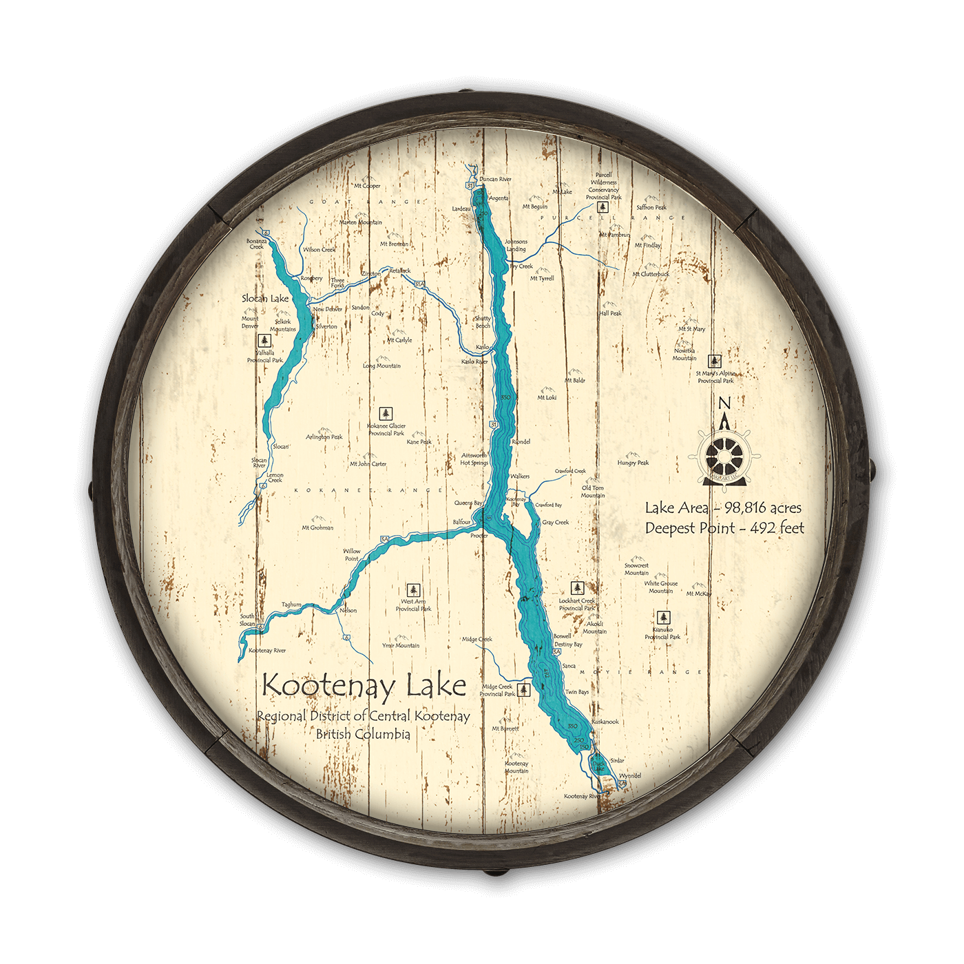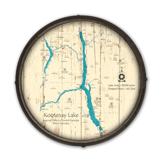 Immerse yourself in the natural splendor of British Columbia with our detailed map of Kootenay Lake. Available in both rustic wood and contemporary metal finishes, this map is a tribute to Kootenay Lake's majestic beauty. Kootenay Lake is known for its expansive, deep waters and the stunning Purcell and Selkirk mountain ranges that embrace it, as well as notable features including the charming towns of Nelson and Kaslo, and landmarks like the historic SS Moyie, the world’s oldest intact sternwheeler. The map offers a tangible connection to one of British Columbia’s largest and most picturesque lakes.