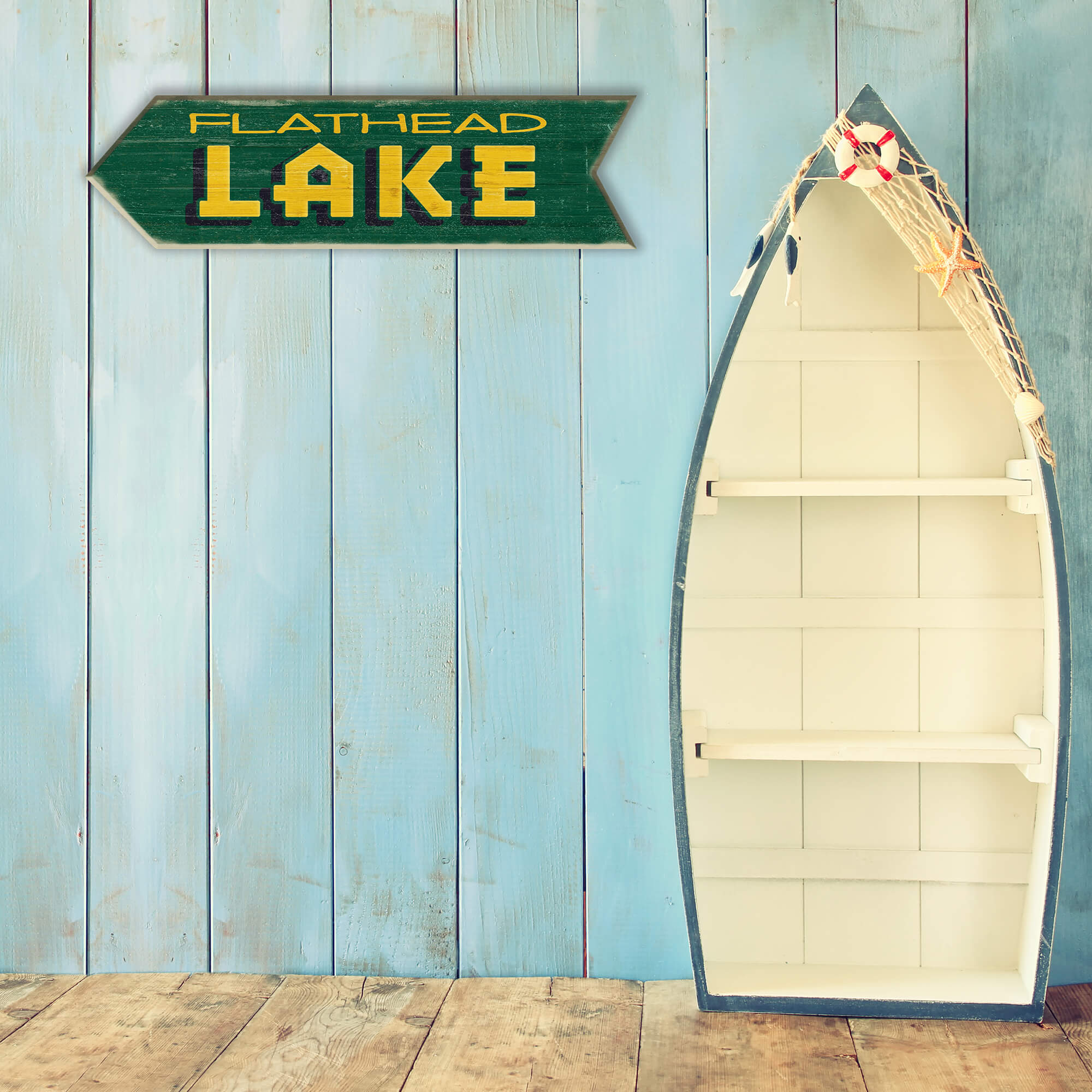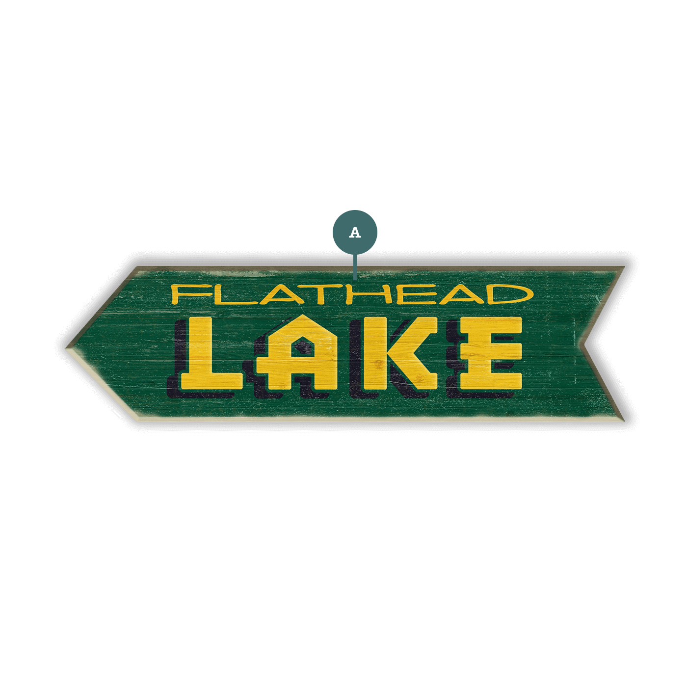 Directional Lake Arrows: Top Text - Wood Wall Decor