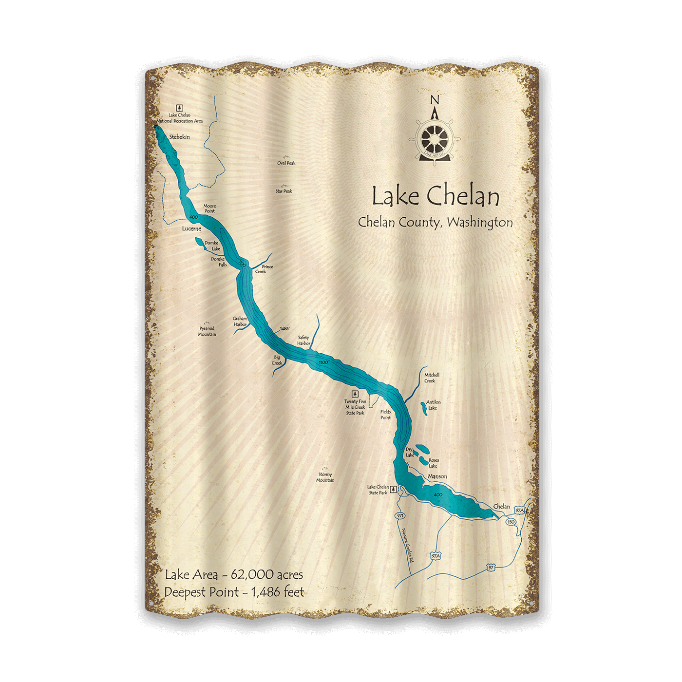 Lake Chelan is a unique and beloved destination, with a fascinating history. Did you know that Lake Chelan is a glacier-fed lake, with roughly 100 glaciers draining from the nearby mountain peaks? With 50.5 miles of pristine lake, this map showcases the many recreational activities available to visitors and residents alike, including Lake Chelan National Recreation Area, Twenty Five Mile Creek State Park, and Lake Chelan State Park. This vintage-style map is a must-have for anyone who loves Lake Chelan, whether you're a frequent visitor or a homeowner.