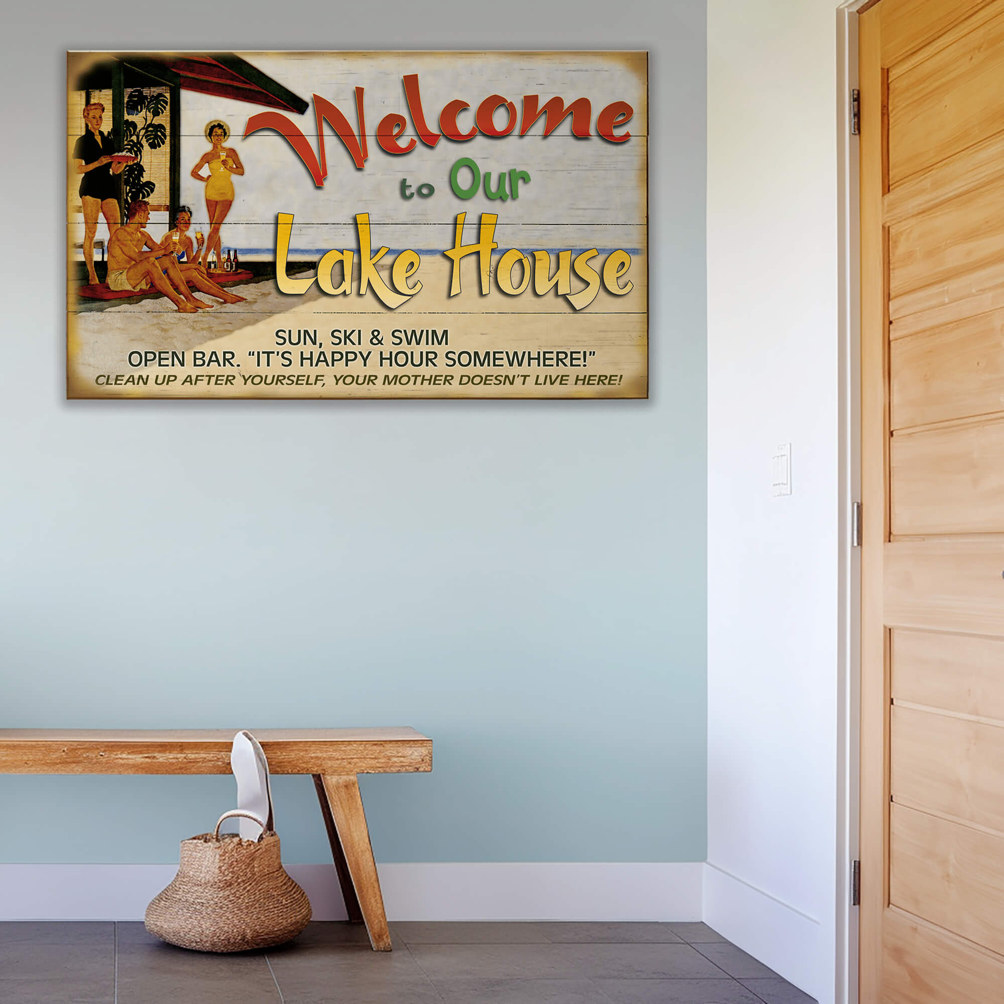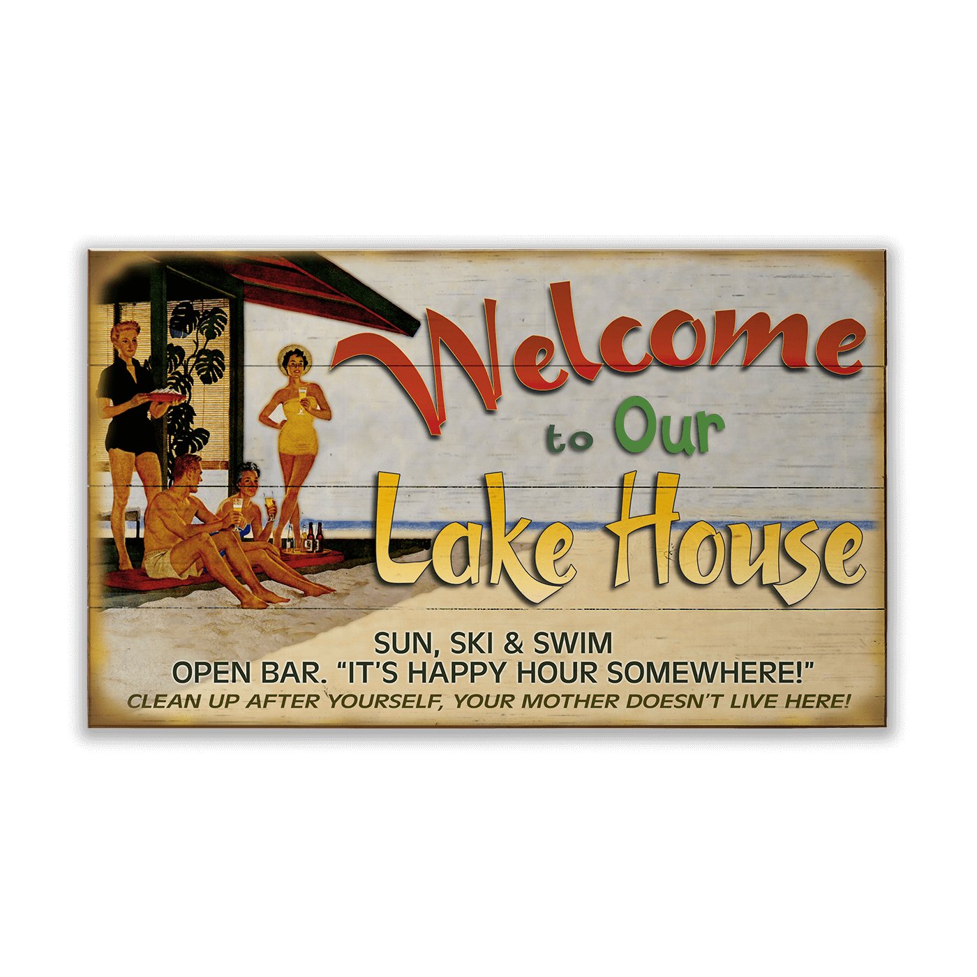 Create the perfect lake house retreat with this vintage-style sign, crafted from wood and featuring a nostalgic mid-century lakeside scene. Designed to bring a warm and inviting touch to any cabin, lodge, or lake home, this rustic wooden wall décor sets the tone for relaxation and good times by the water. Ideal for lake lovers, boaters, and weekend getaways, this unique lake house sign makes a charming statement piece.