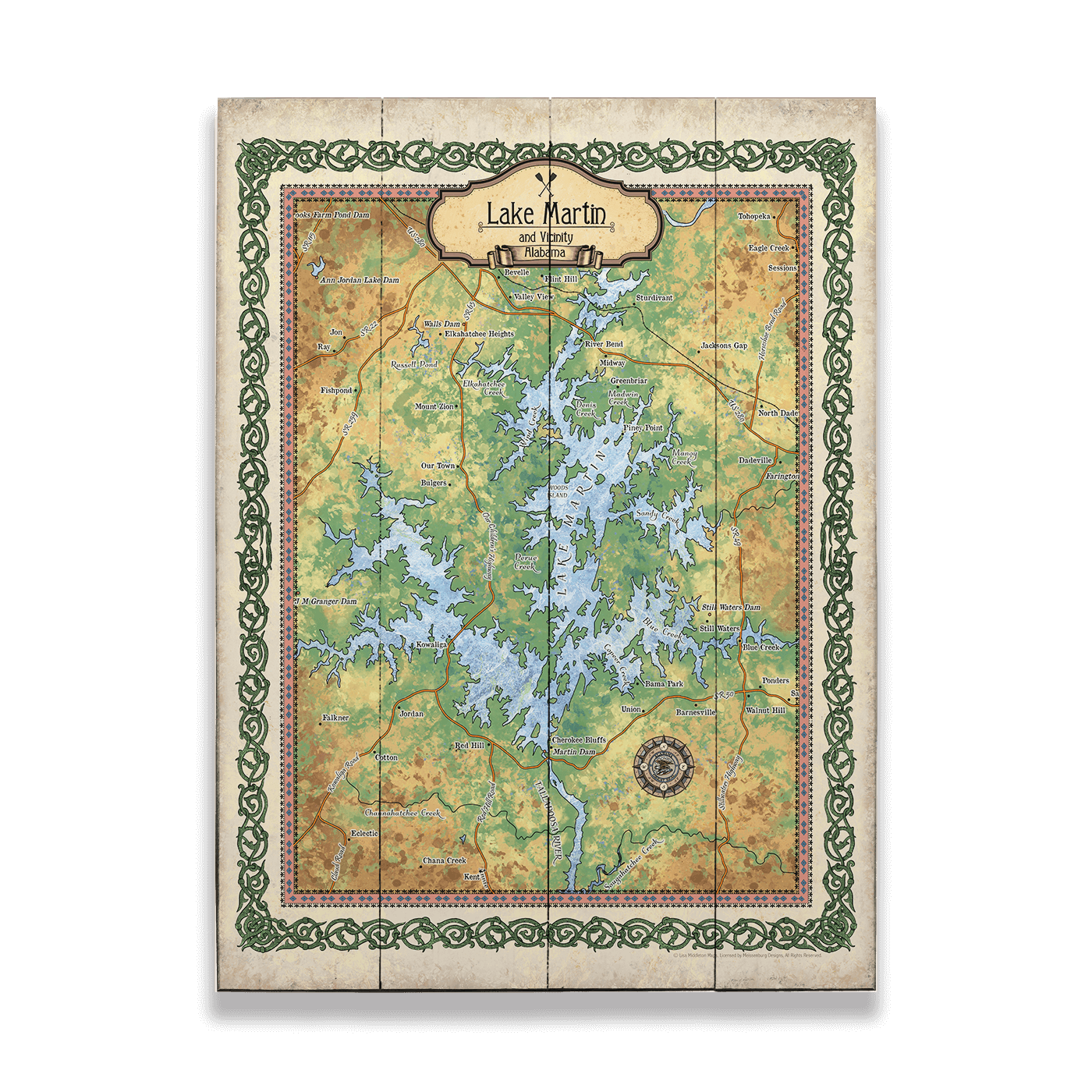 Lake Martin, Alabama: Illustrated Map - Wood & Metal Wall Art