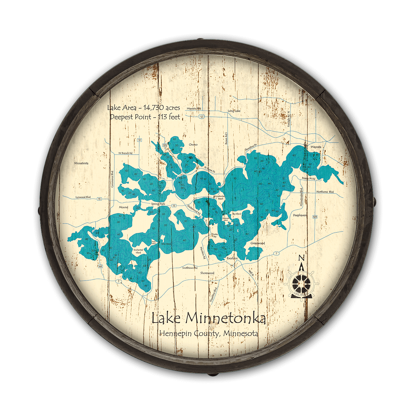 Take a journey back in time and explore the natural beauty and rich history of Lake Minnetonka, Minnesota with this stunning vintage-style map. Lake Minnetonka is a true treasure of the Midwest, offering a wide range of recreational activities that draw visitors from near and far. Lake Minnetonka's rich history dates back to the early 1800s, when it was a major transportation hub for the region, and it played a significant role in the development of Minnesota as a state.