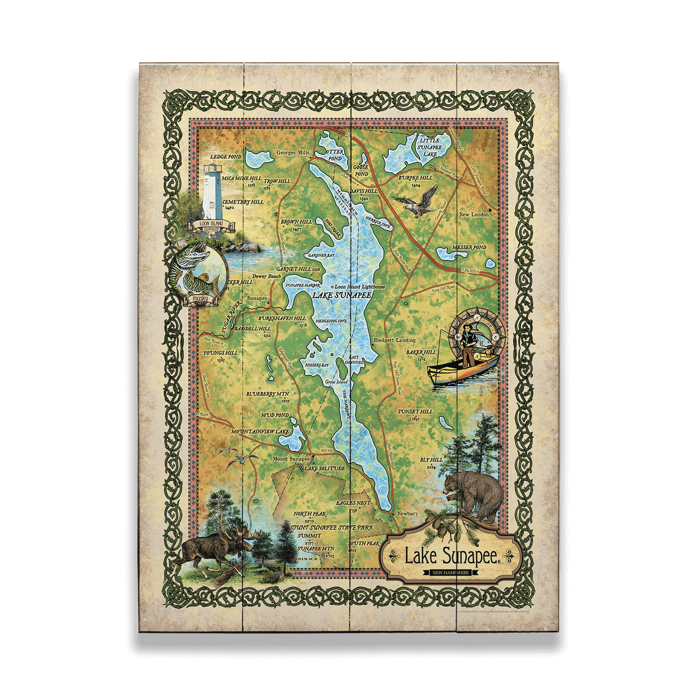 Featuring intricate details and charming embellishments, this artwork captures the essence of this beloved lake and its surroundings. From local wildlife to historical sites, each element is beautifully represented, making this map not only a piece of art but also a valuable guide for exploration and appreciation. Ideal for decorating a home or as a unique gift, this map is a treasure for anyone who loves Lake Sunapee.