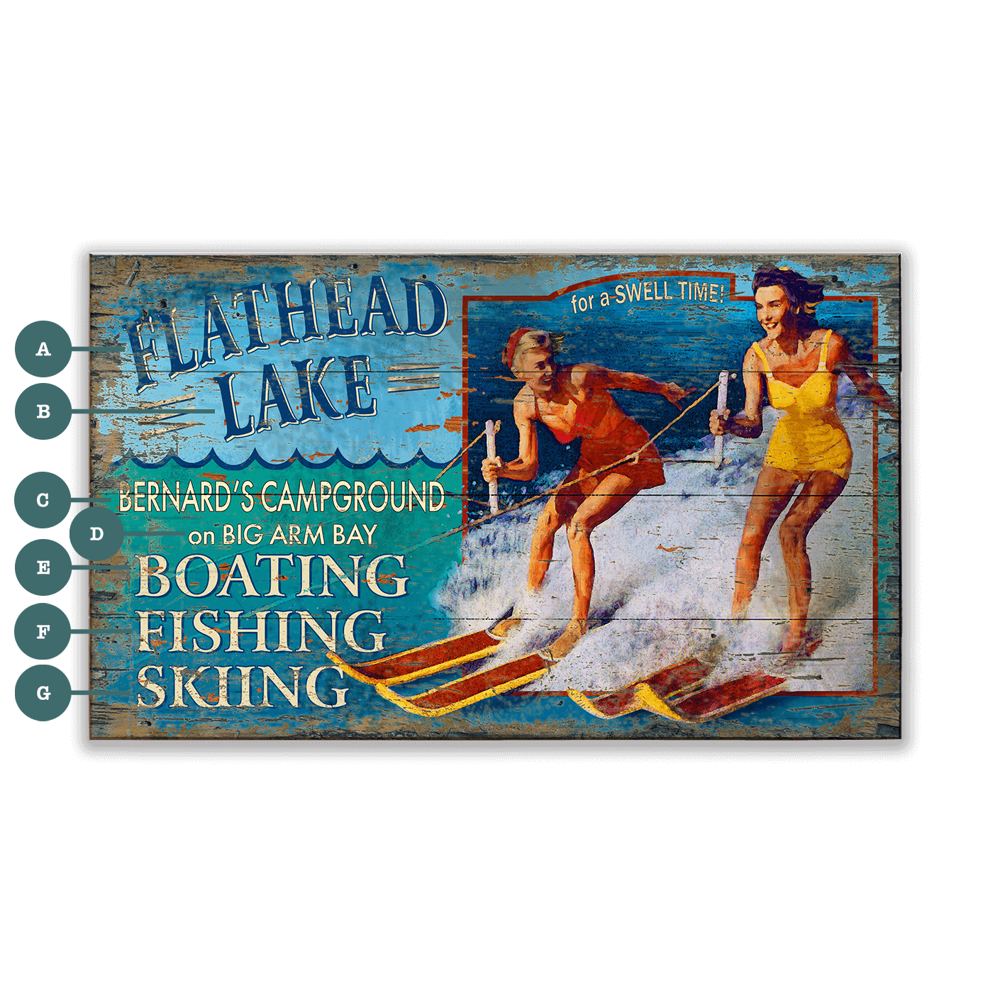 Dive into the vibrant thrill of summer activities with this colorful, vintage-inspired artwork. Featuring lively scenes of waterskiing, the piece captures the essence of water sports and the excitement they bring. The artwork's rich, textured background and dynamic figures in motion make it a captivating addition to any space that celebrates the great outdoors and aquatic adventures.