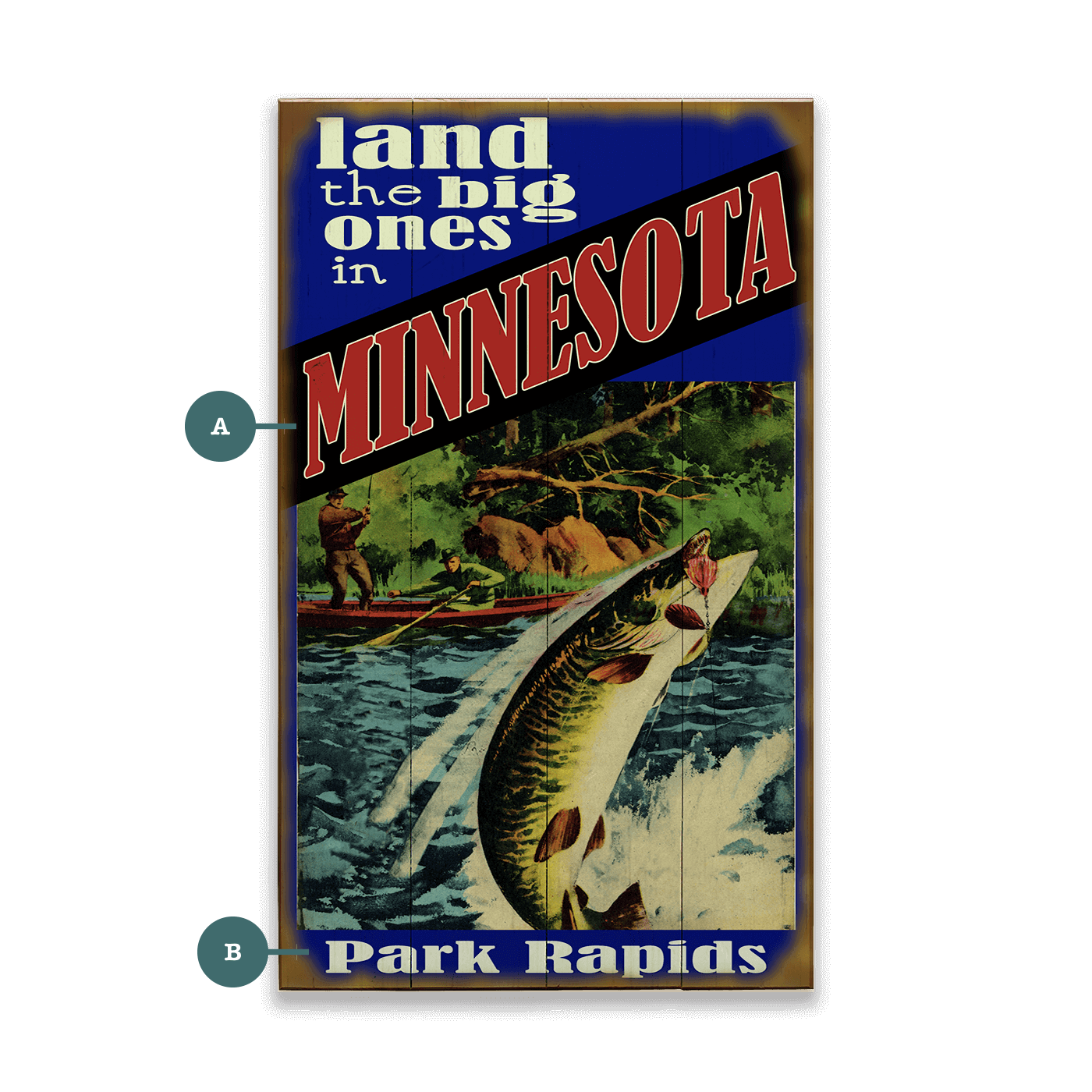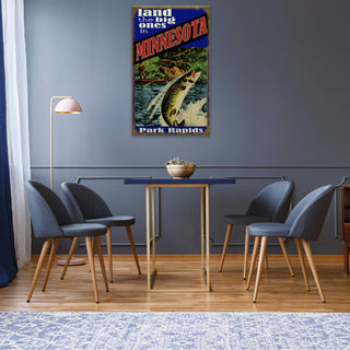 Embrace the challenge of muskie fishing with this dynamic vintage-style artwork. Featuring a striking image of a muskie being caught, this piece highlights the excitement and skill involved in fishing for this elusive species. Ideal for fishing enthusiasts and those who appreciate rustic decor, this artwork celebrates the sport of muskie fishing.
