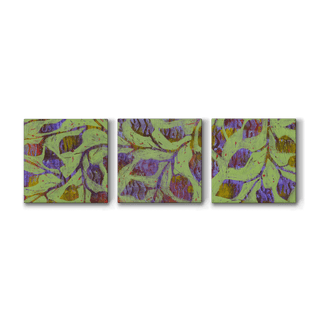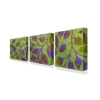 This box art trio showcases a mesmerizing interplay of deep lavender leaves on a background of rich green. The intricate layering and textured patterns create a sense of depth and vitality, evoking the serene beauty of nature in contemporary form. Perfect for adding a touch of sophistication and tranquility to any space, this piece brings a harmonious balance of color and design.