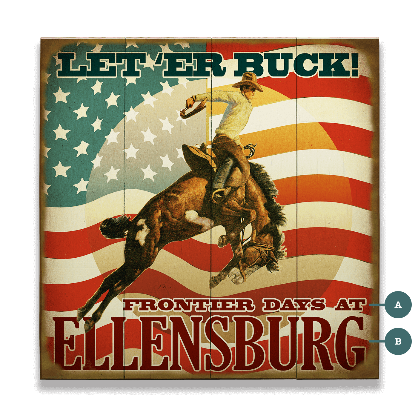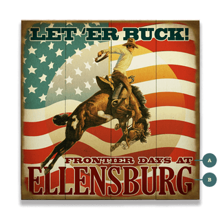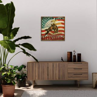 This bold, vintage-style rodeo artwork captures the heart-pounding excitement of bronc riding. Featuring a fearless cowboy mid-ride on a bucking horse, framed by a waving American flag, it embodies the rugged spirit of Western tradition and frontier resilience. The distressed textures, dynamic typography, and rich colors enhance its authentic, time-honored rodeo aesthetic. Perfect for rodeo fans, Western enthusiasts, and those who celebrate cowboy culture, this piece is a tribute to the grit, glory, and unbreakable spirit of the American West.